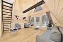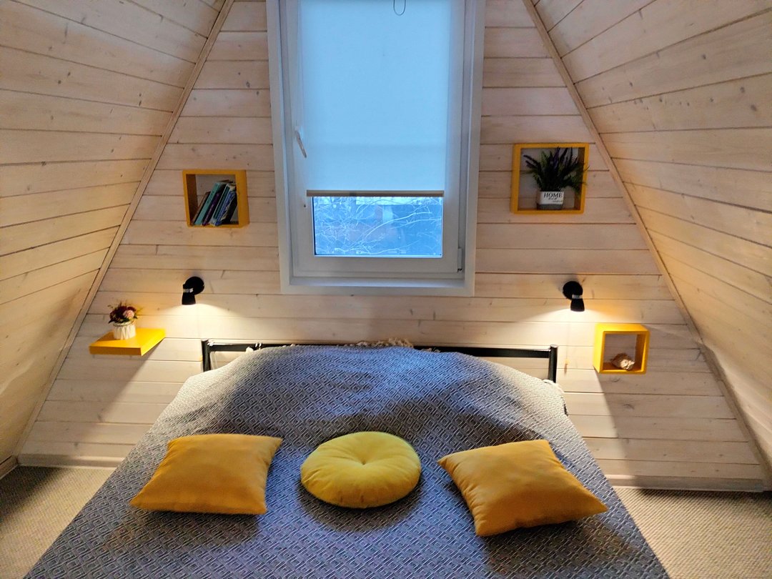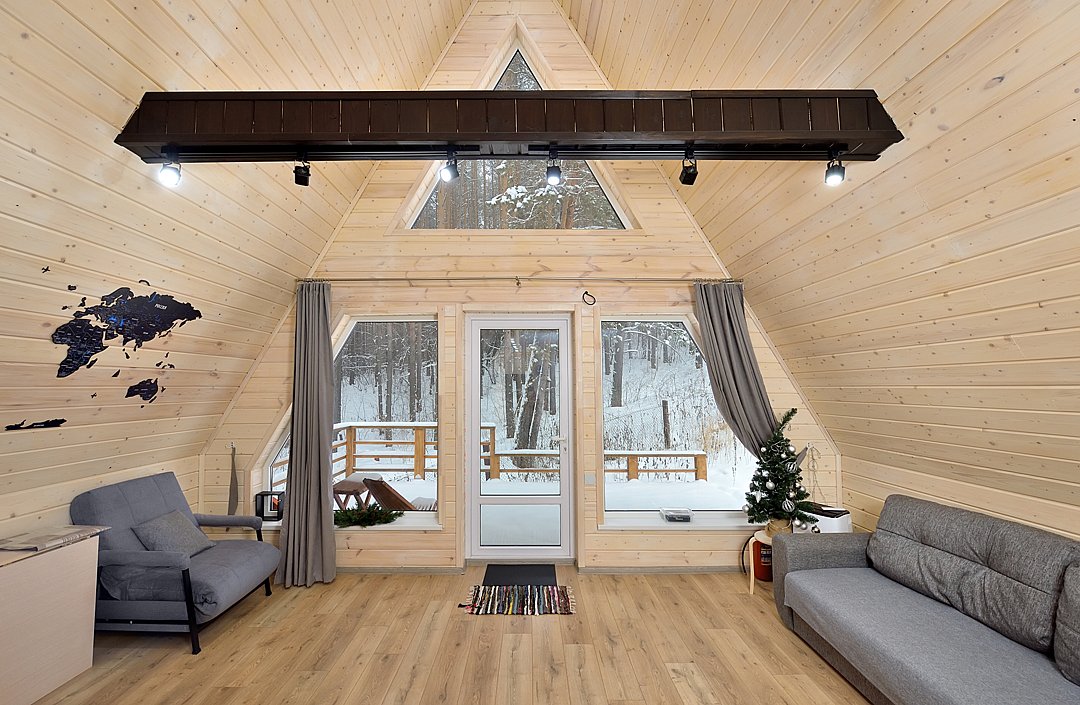 Здесь Вы найдёте уютные домики в стиле A-frame, каждый из которых вмещает от 2 до 6 человек.