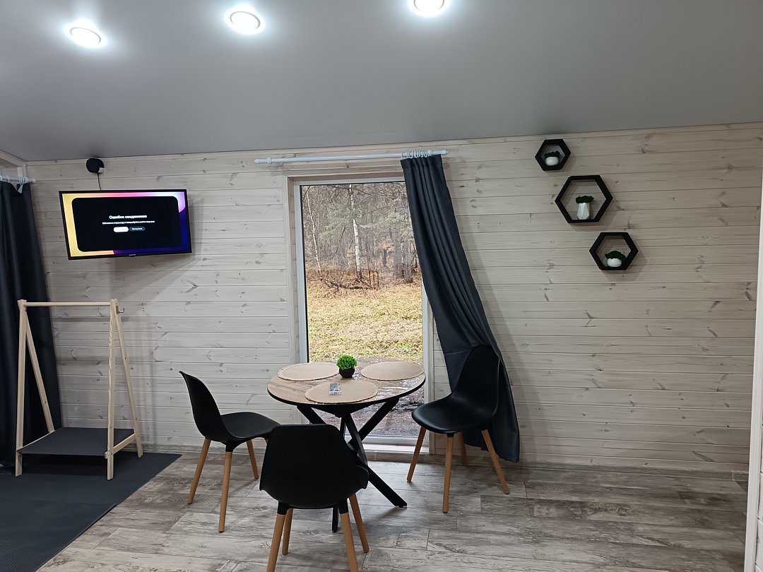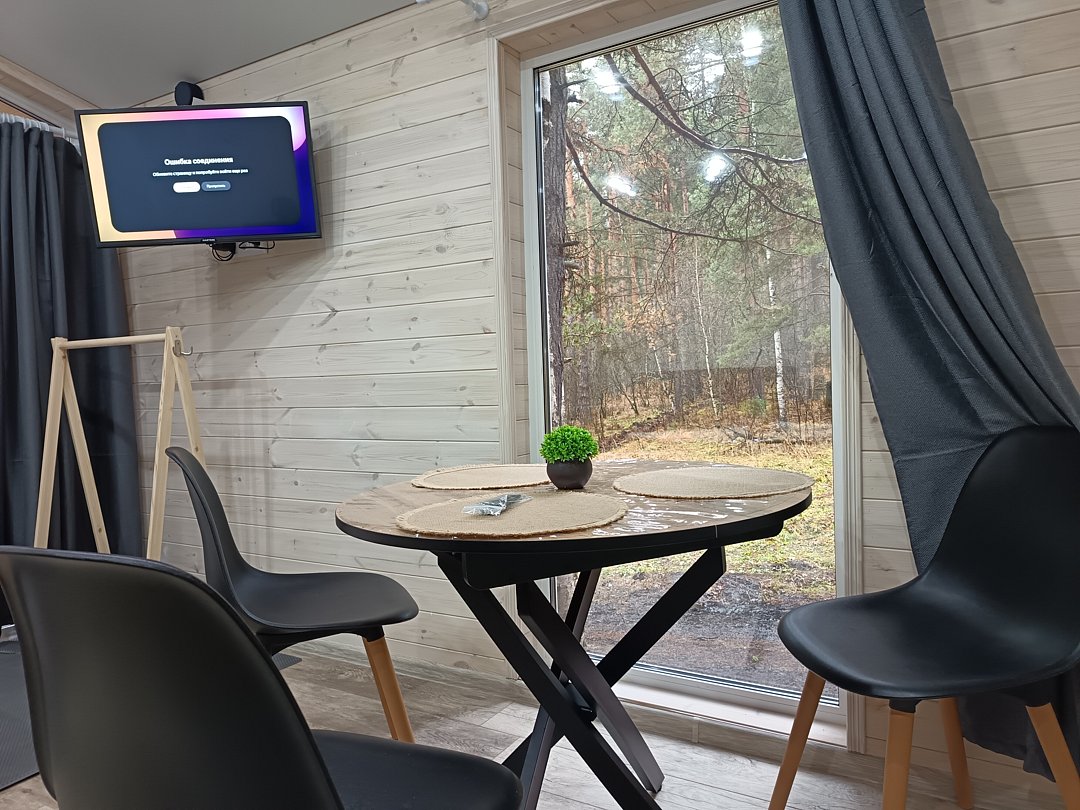 С террасы открывается великолепный вид на горы и лес. Комфортная и уютная баня с панорамным окном обеспечит вам расслабляющий отдых. В домах имеется все необходимое для комфортного проживания, включая дровяные камины, где можно наслаждаться зрелищем пламени. Также в вашем распоряжении медиа-система Яндекс Алиса.