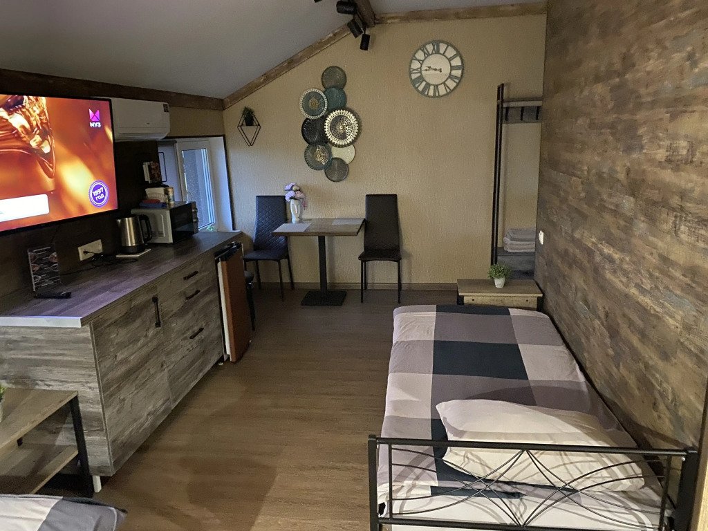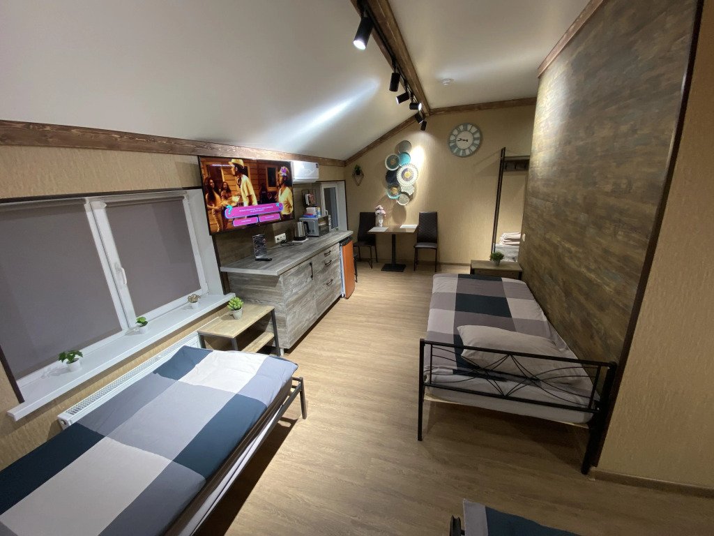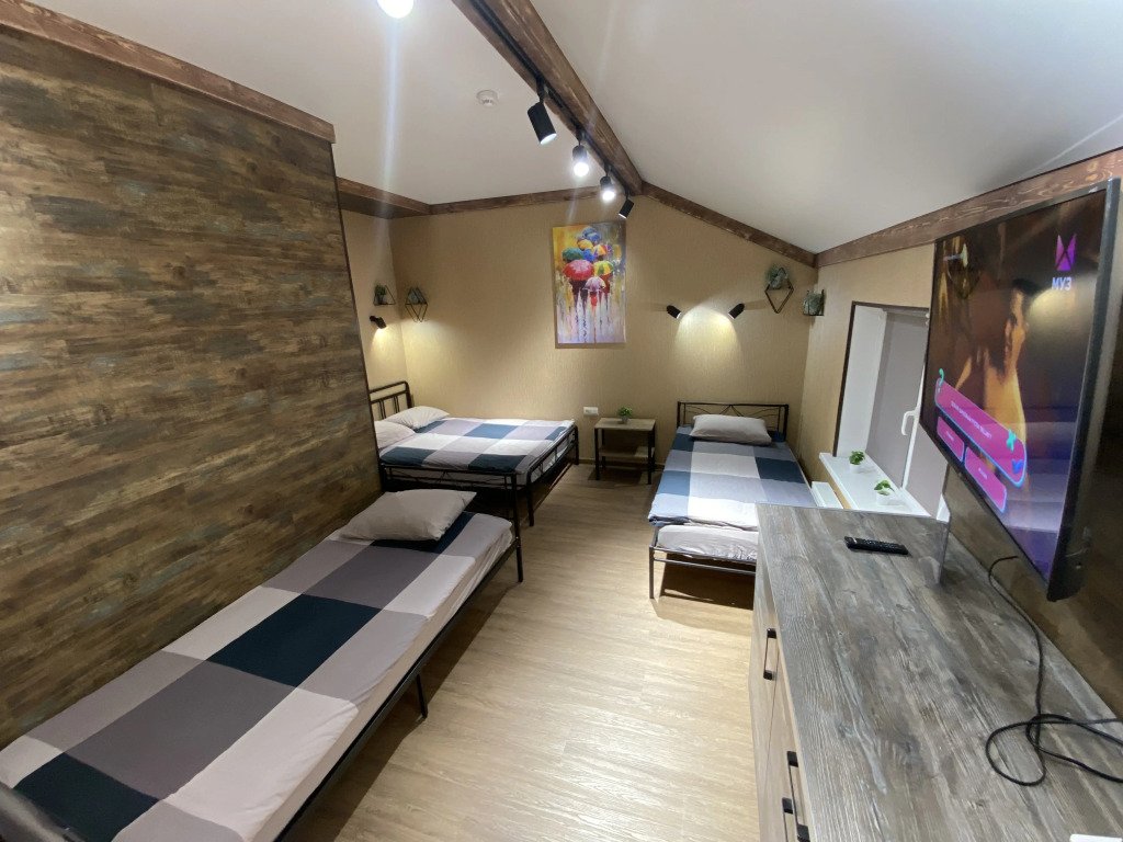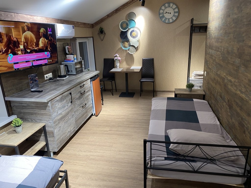 Номер уютно обставлен и оснащён необходимым, чтобы отдохнуть после долгого и насыщенного дня. Имеются телевизор. Оснащение зависит от выбранной категории номера.