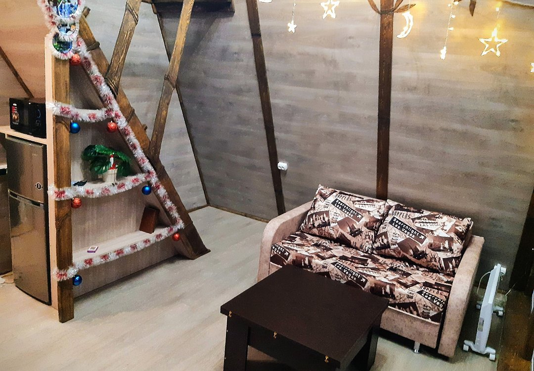 Глэмпинг представляет собой круглогодичный комплекс из домиков формата А-фрейм – Тропики, Корабль, Мозаика, и двух домиков Близнецы. Все дома предусматривают размещение для 5 человек, с возможностью дополнительного места на раскладушке. В номерах установлены двуспальные кровати, раскладывающийся диван, кресло-кровать, есть телевизор и кондиционер. Полностью укомплектована кухня – плита для приготовления еды, микроволновая печь, холодильник, чайник, посуда. Санузел совмещенный, с душем, феном и туалетными принадлежностями.