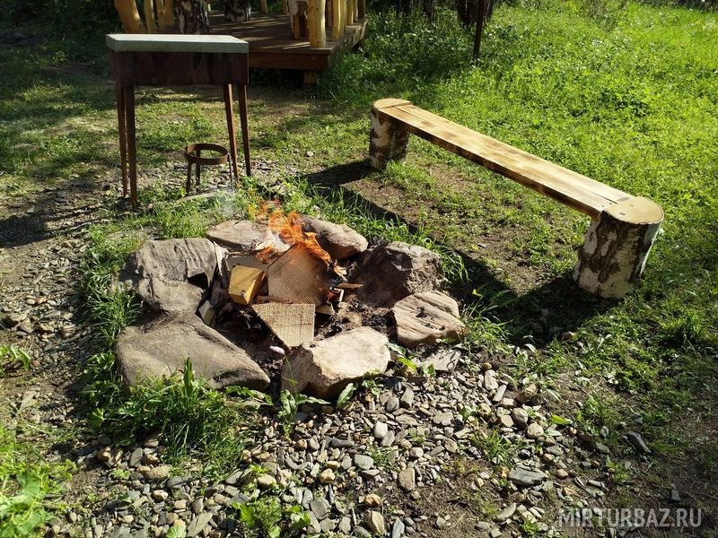 На территории есть мангальная зона со всем необходимым для приготовления еды.