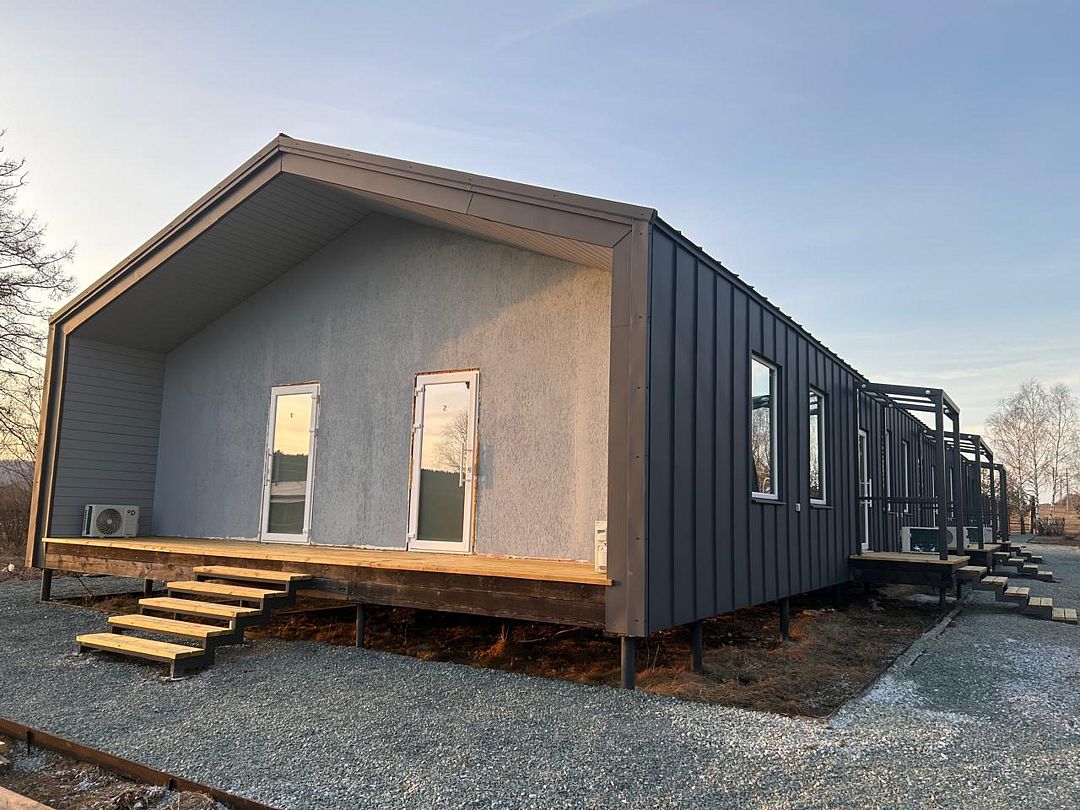 Комната в комфортабельном модульном уютном домике с индивидуальным санузлом в каждом номере с горячей водой.