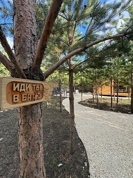 Здесь вы сможете насладиться жаркой баней, посмотреть кино под открытым небом, приготовить блюда на мангале или же позагорать под открытым небом в жаркий сезон. Для детишек установлен специальный батут.