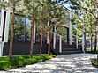 - панорамные окна с видом на сосны.