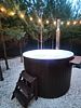 В купель вмонтирована безопасная печь, которая растапливается дровами.