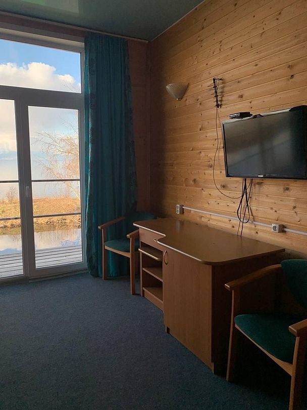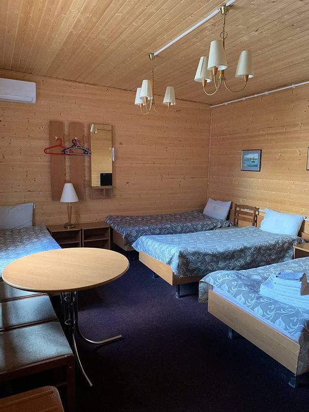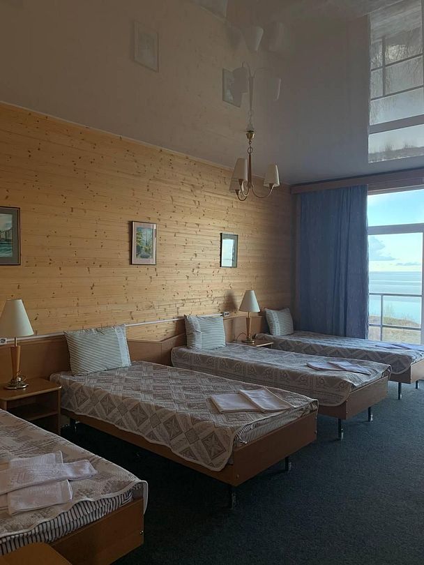Номер со всеми удобствами на четыре персоны, но без вида на Белое озеро.