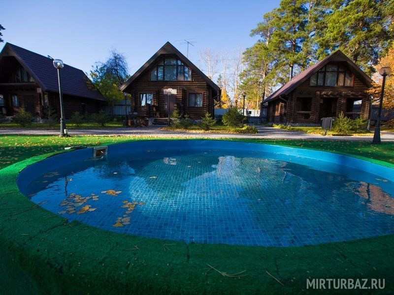 Двор заимки оформлен мягким покрытием, что дает возможность отдыхать комфортно и в чистоте. Не территории два бассейна, где можно весло и безопасно играть детям, или расслабиться после баньки взрослым.