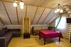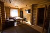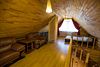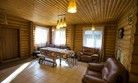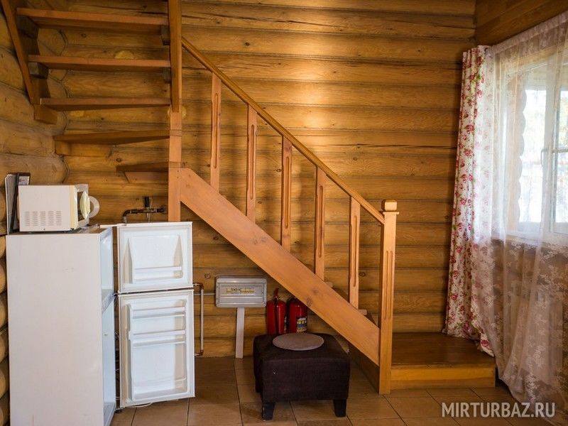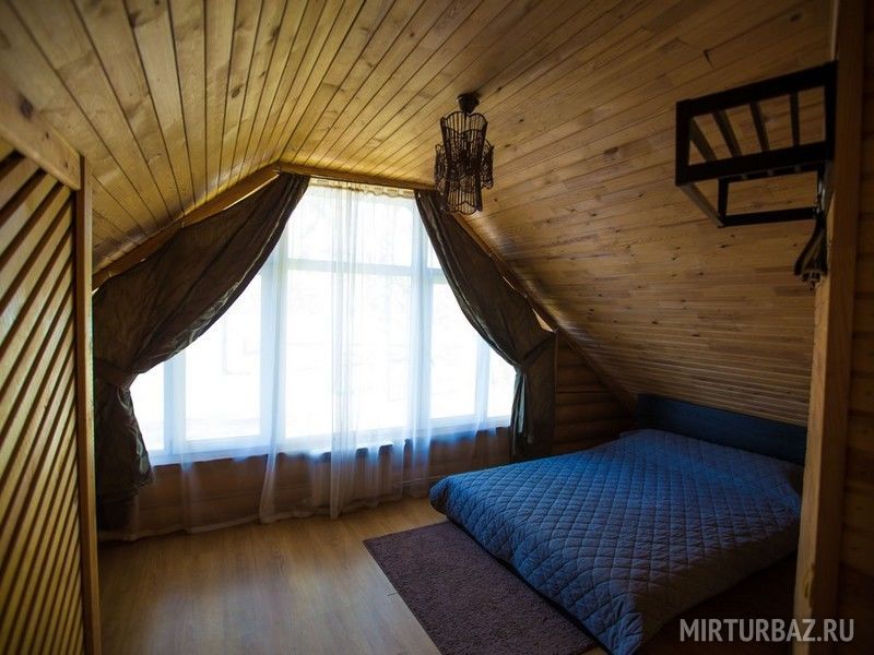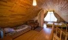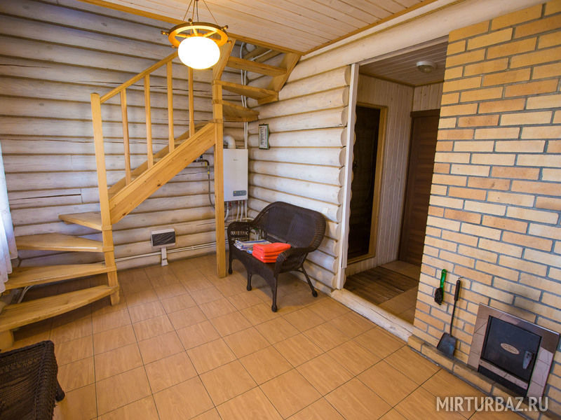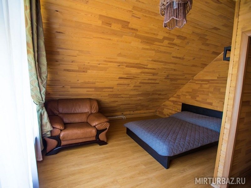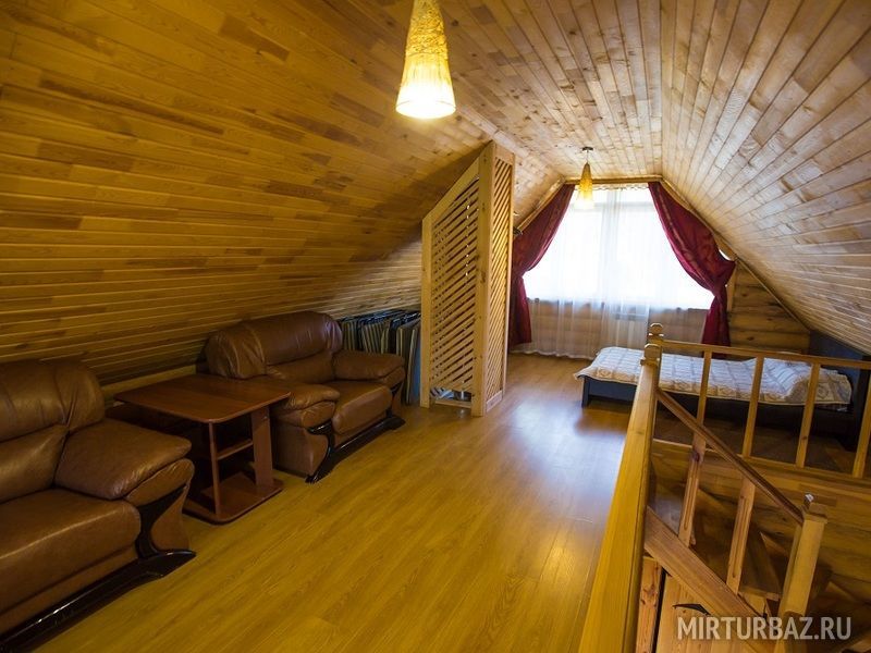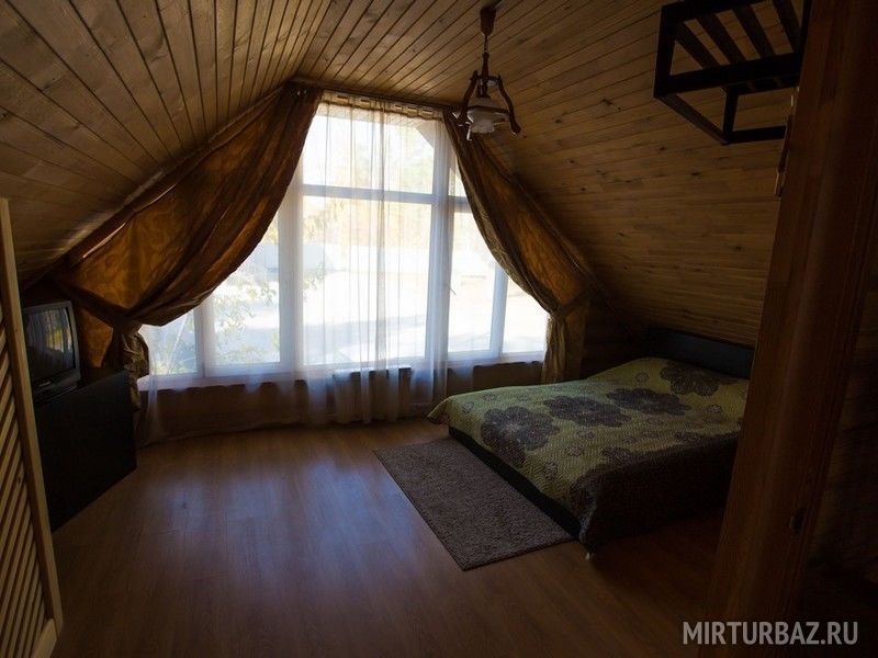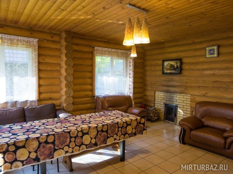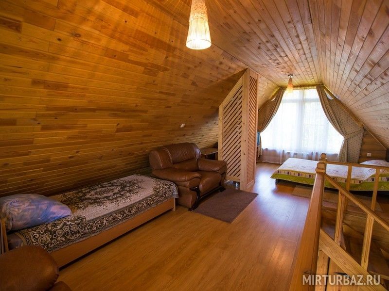 В доме имеется баня, холодильник, СВЧ-печь, посуда. На втором этаже большая мансардная комната с мягкими диванами и столом, за которым может расположиться большая дружная компания. На улице есть еще один столик и мангал. Возможна аренда домика по часам, подробности уточняйте у администратора.