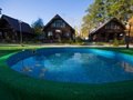 На огромной территории между домиков на мягком покрытии находятся 2 бассейна с подогревом. Один из бассейнов неглубокий, что делает его безопасным для детей.