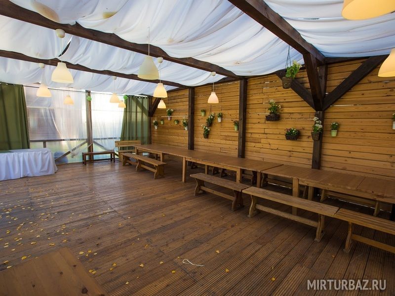 Беседка на открытом воздухе для мероприятий. Праздник по любому поводу пройдет легко и весело. Предоставляются услуги выездного обслуживания, а значит торжество будет не только необычным, но и пройдет на высшем уровне сервиса. Разнообразное меню кейтеринга от фуршета до банкета.
