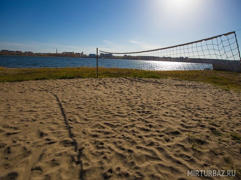 На берегу реки Бердь оборудована специальная площадка для игры в пляжный волейбол.