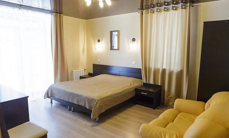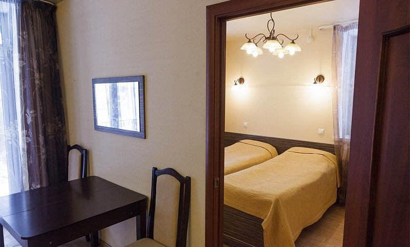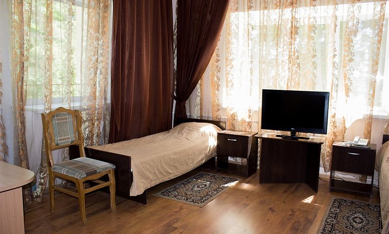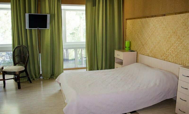 Пансионат содержит около 65 номеров. По запросу предоставляются номера для некурящих. Здесь созданы все условия для комфортного проживания — есть холодильник, телевизор, фен, утюг, сейф, отопление, терраса.