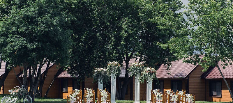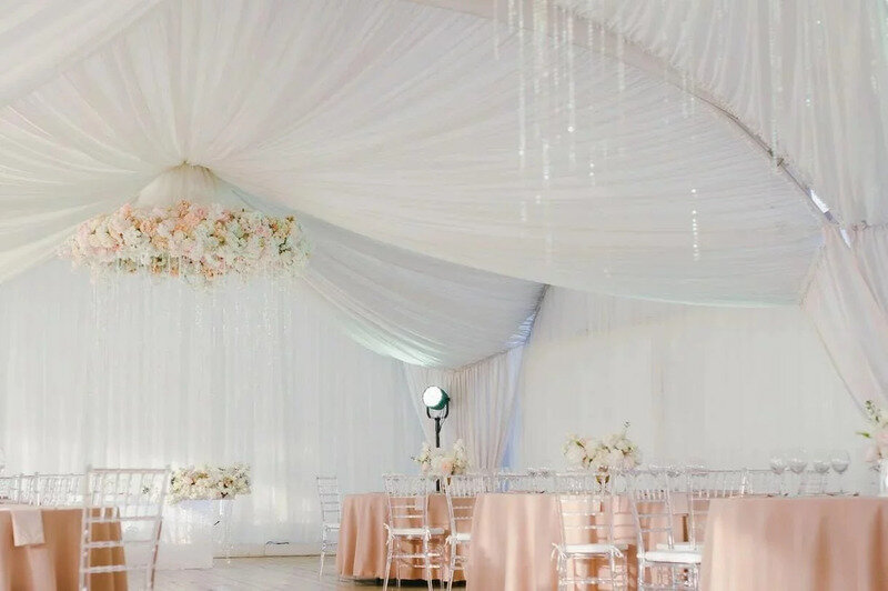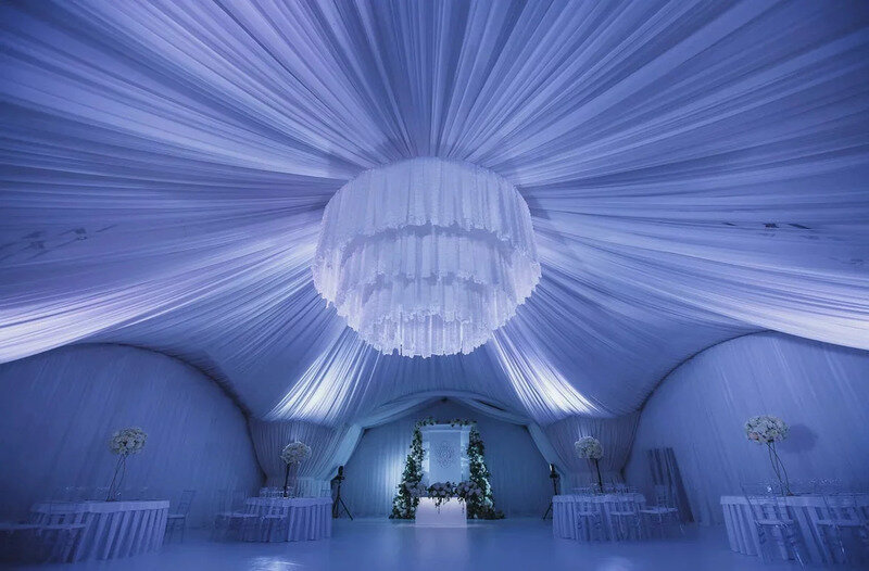 Читать полностьюЛегкая, практически невесомая драпировка, уютная мягкая мебель и приятное теплое освещение в шатре создает атмосферу комфорта и спокойствия. Приветственный коктейль для гостей или посиделки с друзьями на открытой веранде, что прилегает к шатру — решать вам.