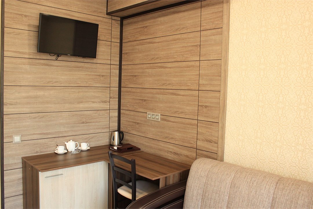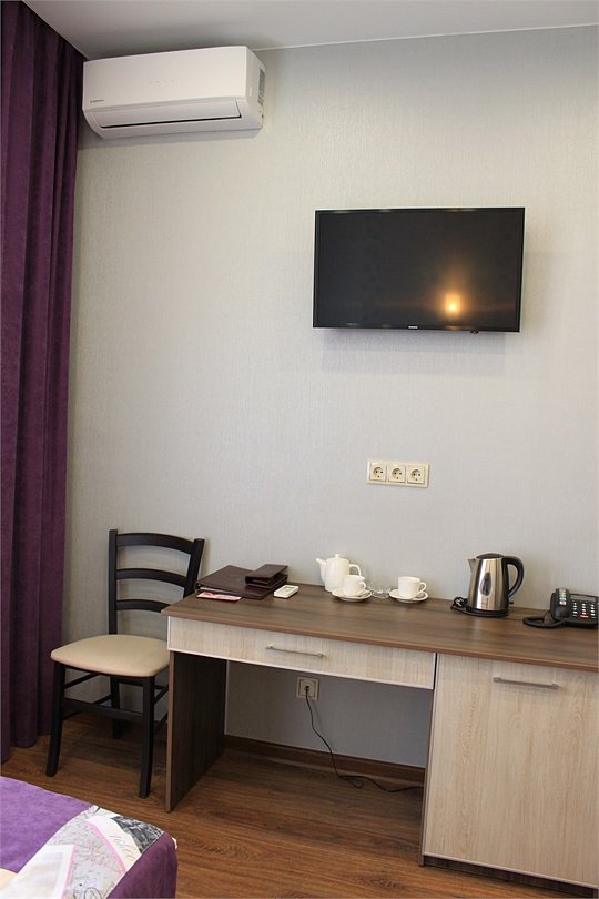 телевизор, Wi-Fi, интернет, холодильник, кондиционер, светильник, кулер, фен, душевая кабина, ванна или душевая кабина, гидромассажный душ, санузел, халаты, банные полотенца, тапочки, гигиенические средства, полутораспальная кровать, ортопедический матрас, стулья, шкаф для одежды, письменный стол, зеркало, чайник, унитаз, раковина, косметическое зеркало, питьевая вода, отопление, отдельный вход в номер, душ, кулер на этаже, вид во двор, стаканы, кофейный столик, стул, стол, туалетные средства, туалет, цифровое тв, телевизор с плоским экраном, мини-холодильник, номер для некурящихВ номере