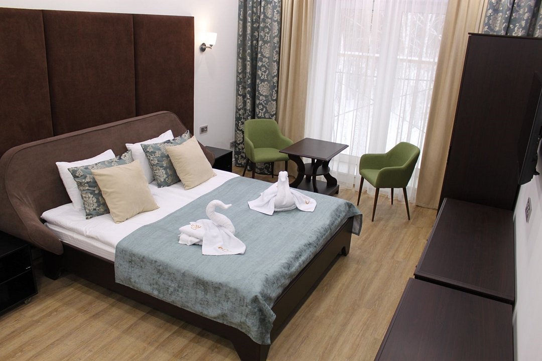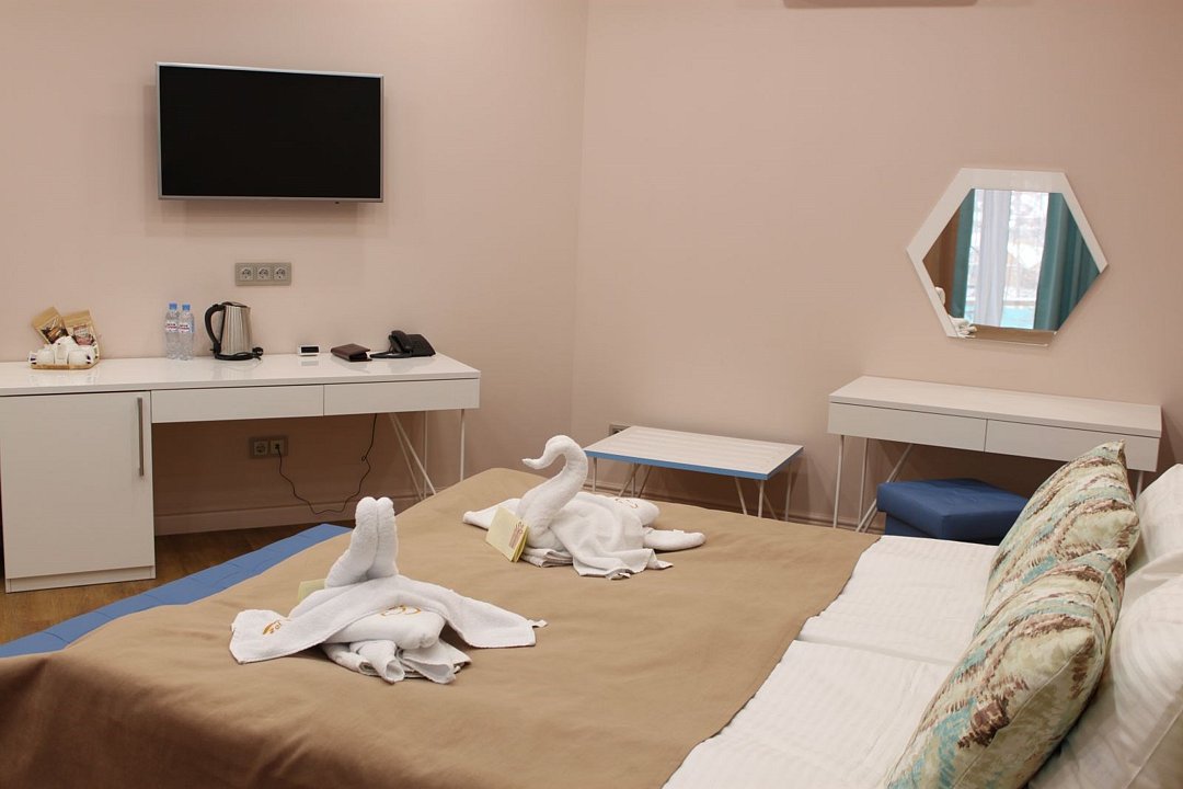 Комфортные номера с современным ремонтом и мебелью, расположенные на 4 этаже спа корпуса. Есть лифтУслуги и удобства