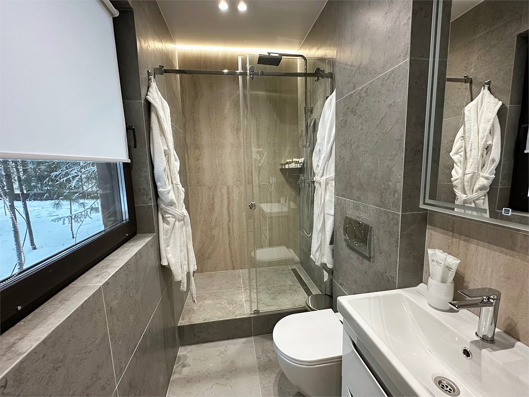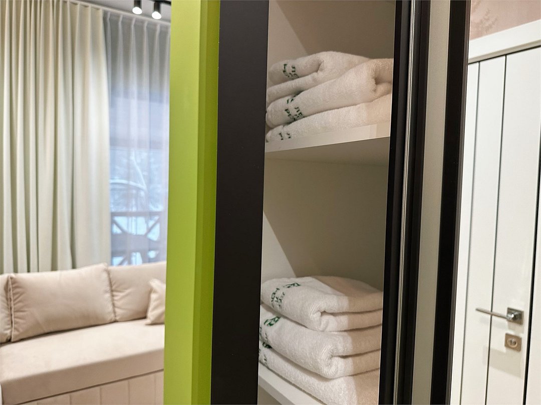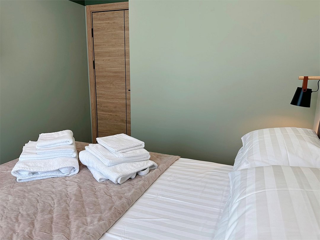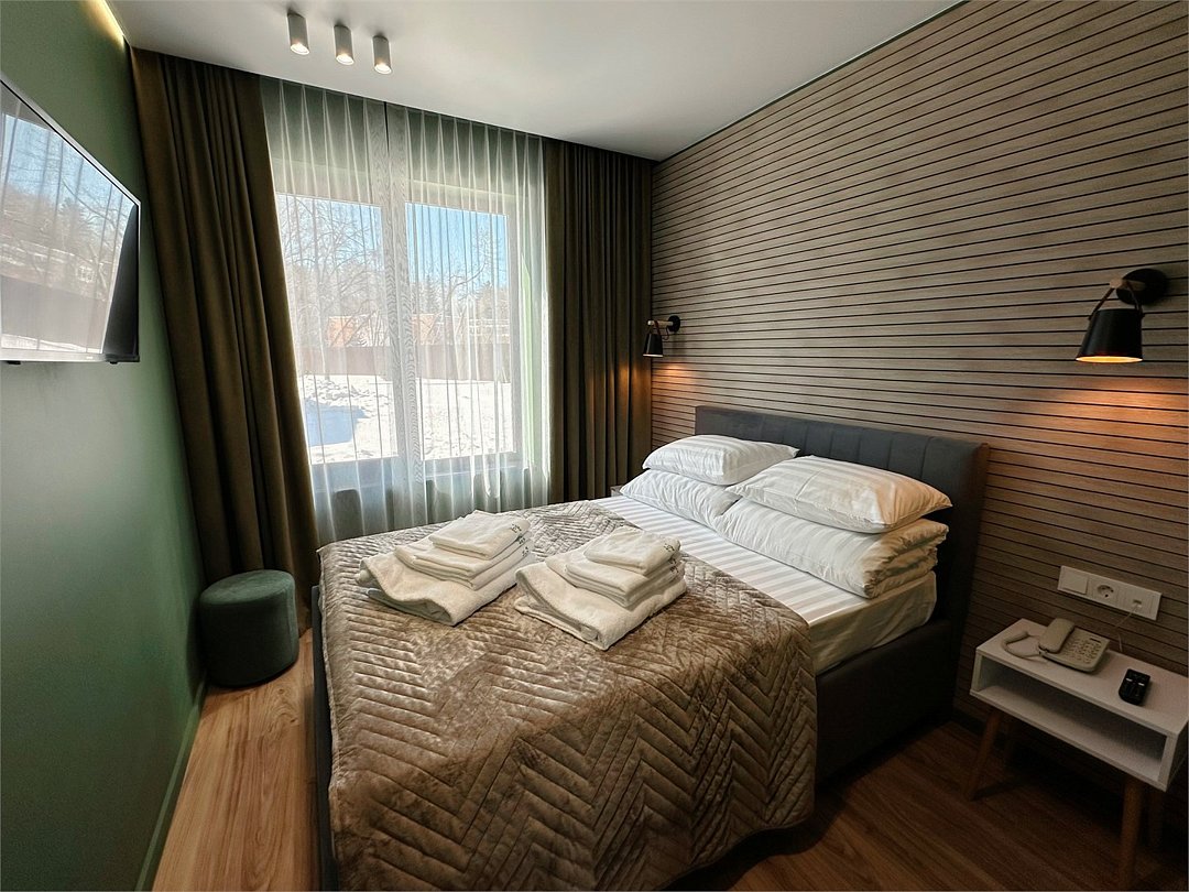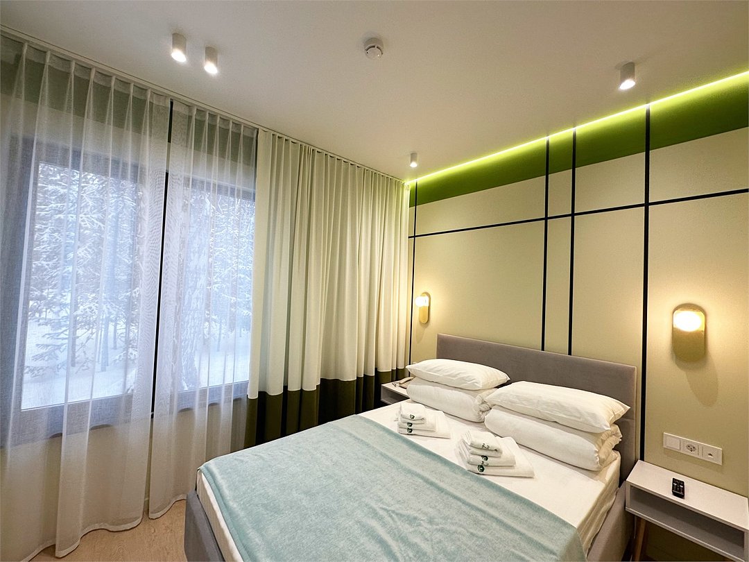 Номер 2 категории «Блочный — семейный» спа корпус. Номер подходит под проживание с детьми. Одна из комнат имеет двухъярусную кровать.Услуги и удобства