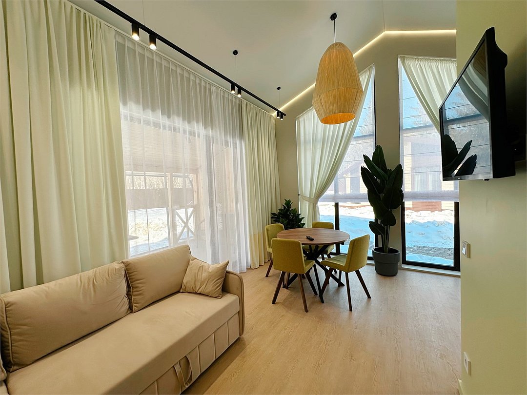 Комфортабельный домик для семьи, 40 м²: гостиная зона, кухня. Для проживания до 4 гостейУслуги и удобства