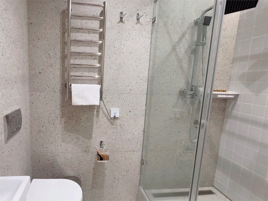 телевизор, Wi-Fi, интернет, холодильник, кондиционер, светильник, фен, система безопасности, ванная комната, душевая кабина, ванна или душевая кабина, гидромассажный душ, санузел, халаты, банные полотенца, тапочки, гигиенические средства, двуспальная кровать, стулья, шкаф для одежды, гардеробная, письменный стол, зеркало, унитаз, раковина, душ, кулер на этаже, стул, стол, туалет, цифровое тв, телевизор с плоским экраном, мини-холодильникВ номере