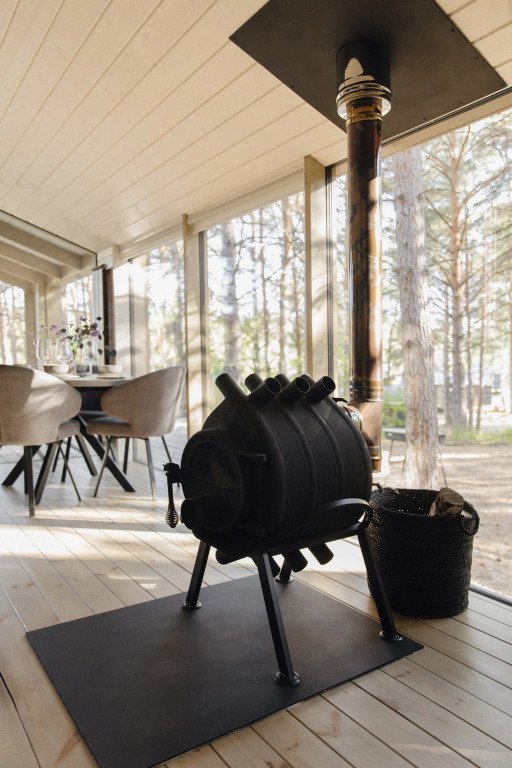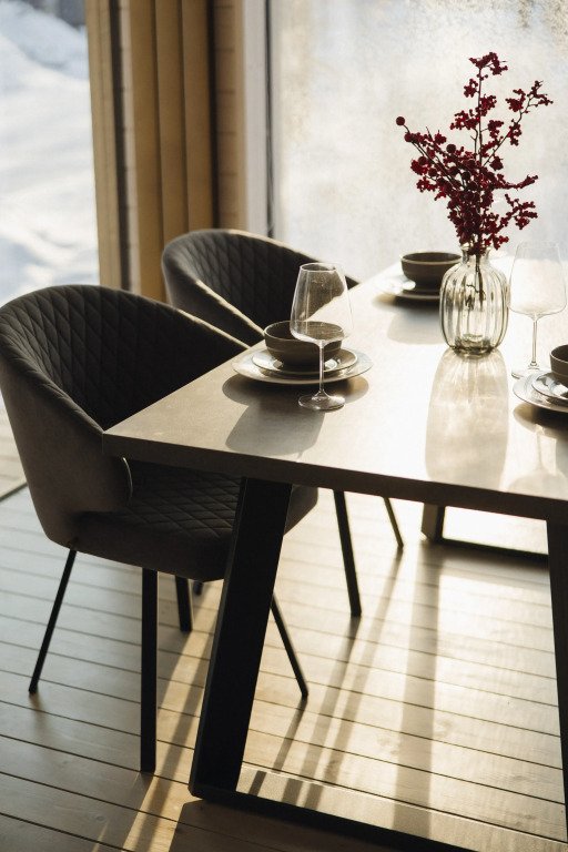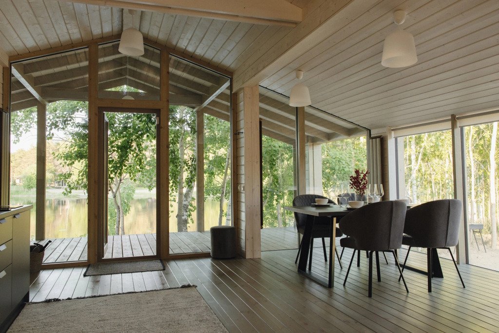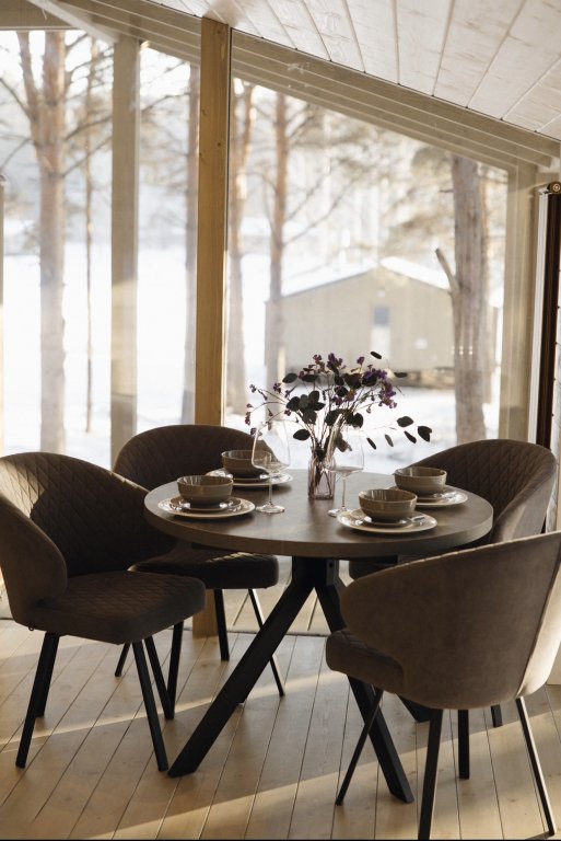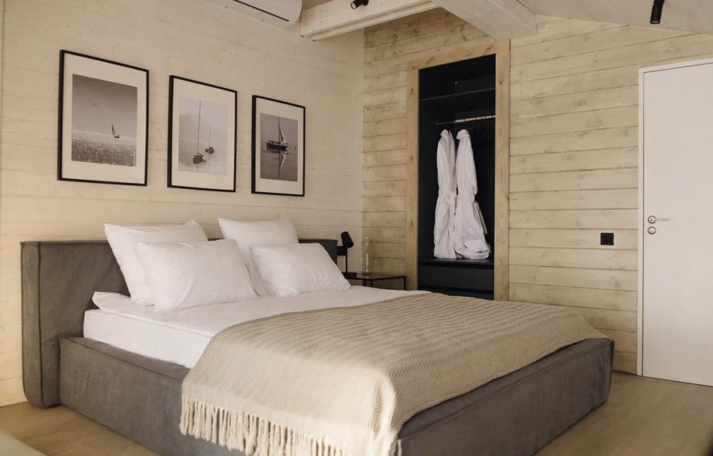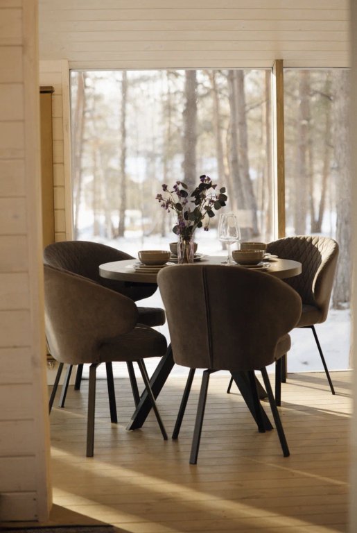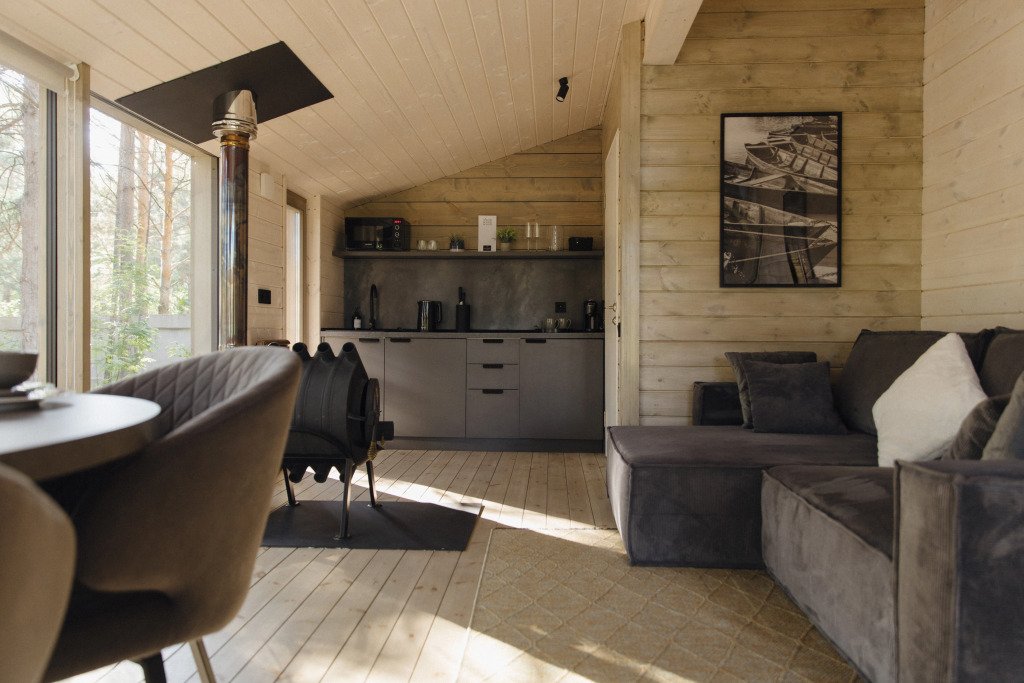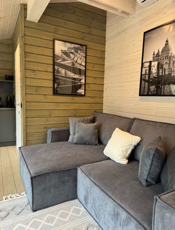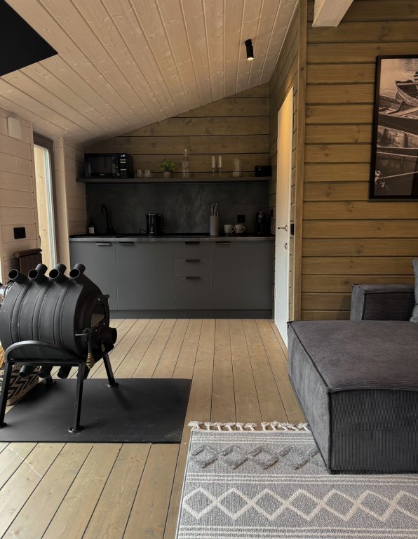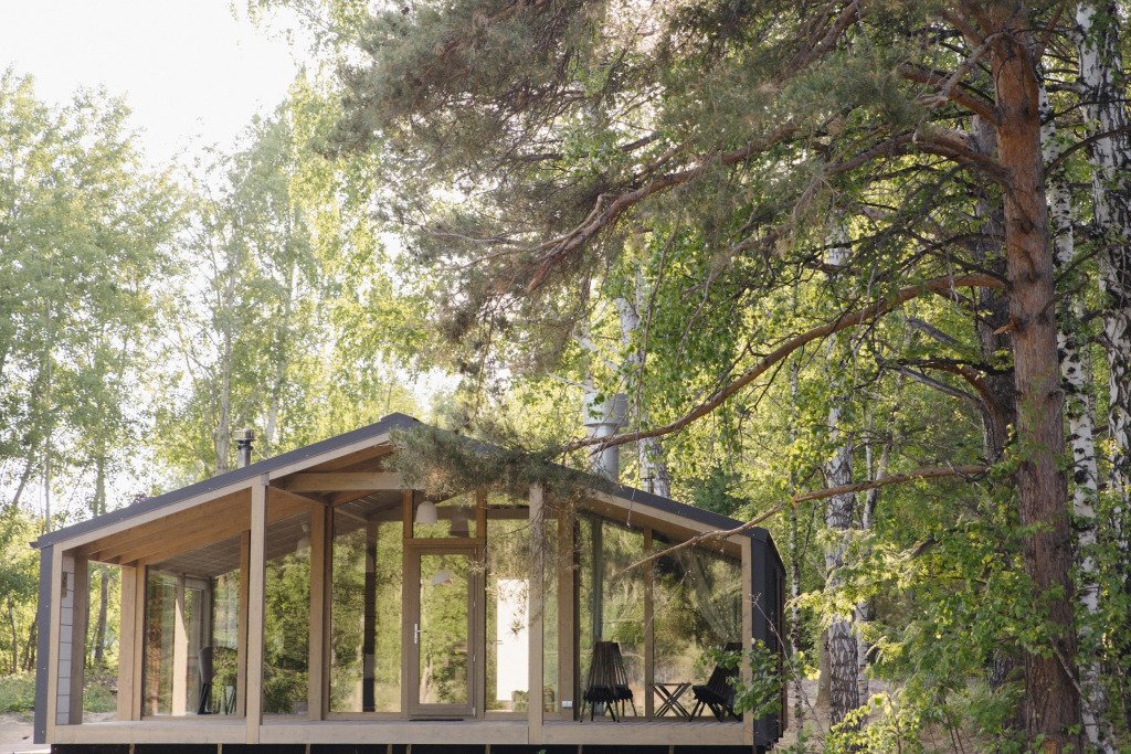 Отель представляет собой комплекс домов. Интерьеры домиков выполнены в стиле шале, с каминами, террасами и панорамными окнами, с использованием натуральных материалов. Каждый дом укомплектован мебелью, кухней, современной бытовой техникой, кондиционерами, текстилем, посудой и необходимым для проживания.
