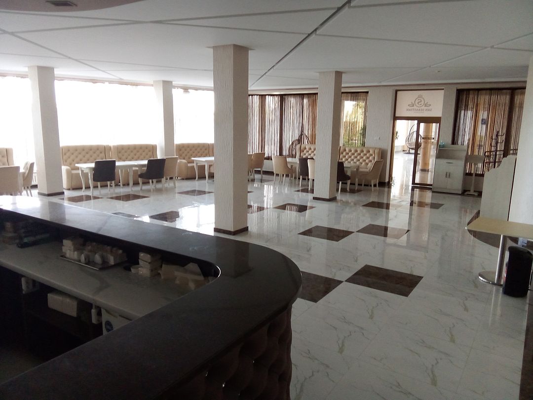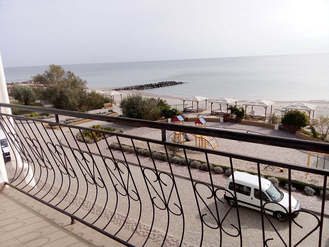 6-этажное здание с 216 номерами оборудовано двумя лифтами и пандусами. Каждый номер включает кондиционер, холодильник, ванную комнату и балкон. Комплекс отличается уникальным панорамным видом на море. Питание организовано в ресторане. На территории отеля расположены большая парковка, спортивная зона и русский бильярд. Для детей предусмотрены игровая комната и площадка. Для организации деловых мероприятий есть 2 конференц-зала. Песчаный собственный пляж находится всего в 80 метрах от отеля, укомплектован навесами и шезлонгами.
