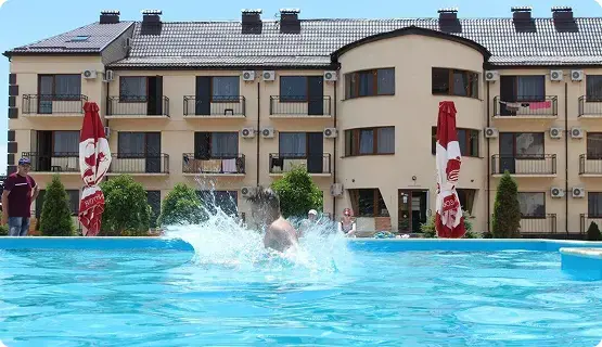 Современный отель «Sofitel» с бассейном. Отель «Sofitel» приглашает гостей отдохнуть на побережье Азовского моря. Отель расположен в самом сердце Бердянской косы в 100 метрах от моря. Все номера оборудованы холодильником, климатической системой и индивидуальной ванной комнатой. Идеально подойдет для семейного отдыха. На территории оборудована детская площадка. Есть беседки с мангалами, где можно замечательно провести свой досуг.