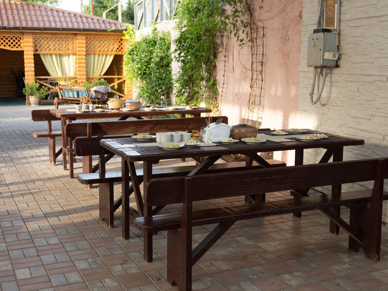 Питание трехразовое, в собственной столовой. Отдыхающие отзываются о качестве питания, как о по-домашнему вкусной еде. Для детей оборудована игровая зона. Для полноценного отдыха взрослых предусмотрен бильярд, настольный теннис, русская баня с купелью, зона барбекю с оборудованным мангалом. Все предусмотрено для проведения корпоративных мероприятий или выходного отдыха с коллективом для сплочения и выработки корпоративного духа. Можно заказать проведение аниматорами детского праздника.