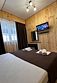 Имеет две спальни с приятным интерьером. В номере: одна двуспальная и две односпальные кровати. Имеется телевизор, кондиционер, шкаф, вешалка, обеденный стол, комод, туалетный столик, холодильник, плита, чайник, СВЧ, стулья.