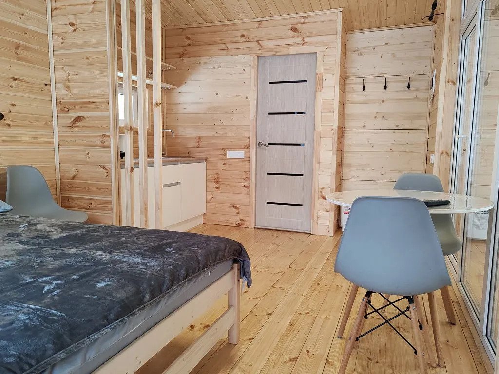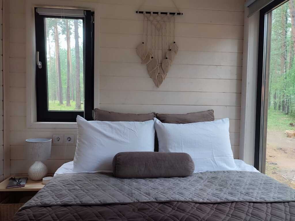 Двухместный коттедж с красивым видом из окна двуспальная кровать