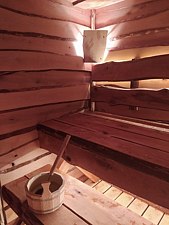 Русская баня с нефритовым камнем, успокаивает и избавляет от лишних эмоций, умиротворяет, вселяет уверенность и придает силы. Круглогодичная купель с бирюзовой, прохладной водой охладит вас, а ушат, расположенный в душевой с возможностью после жаркой парной насладиться контрастным душем;