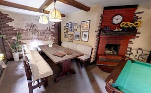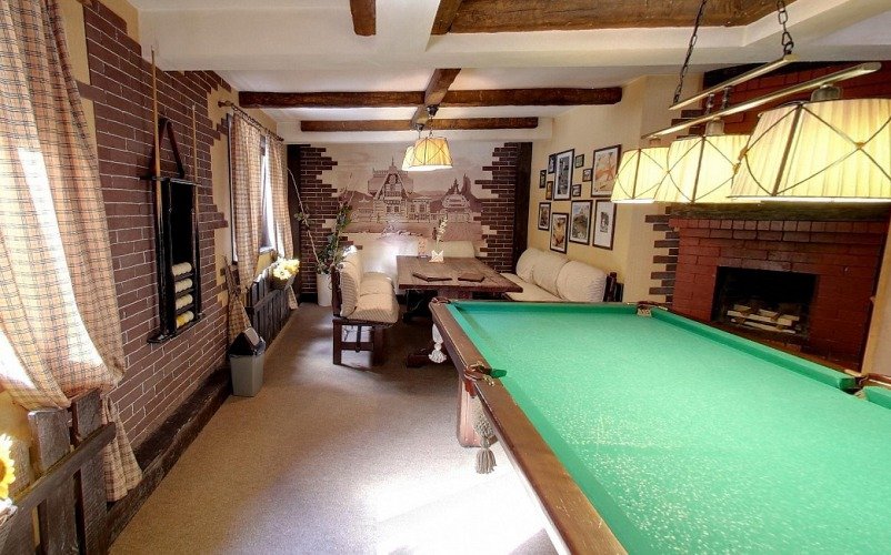 Инфраструктура: зона отдыха, простыни, шапочки, обливное ведро, душМинимальное время аренды: 2 часаДвухэтажный коттедж с камином, бильярдным столом и баней.