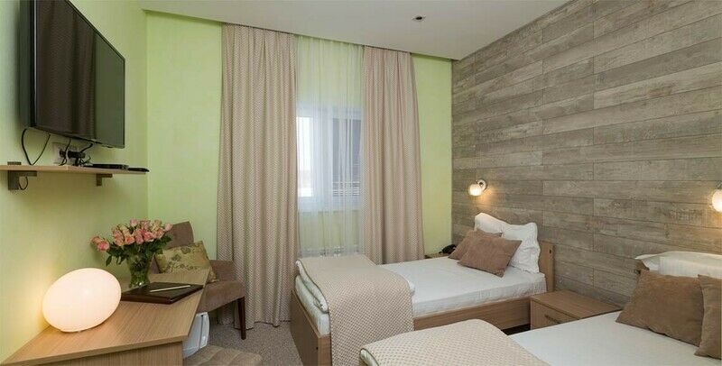 Минус отеля в том, что он находится за городом. Сложно его рассматривать как для командировочных, так и для отдыха, т.к. при отеле нет территории, вокруг одни бани)) со всеми вытекающими)) Ну еще звукоизоляция номеров...это конечно проблема многих отелей, но можно было что-то придумать при строительстве, все таки отель новый. -