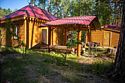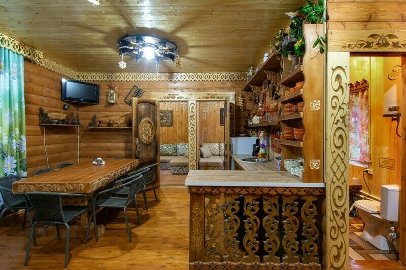 Здесь найдется все, что нужно для активного отдыха. На территории базы отдыха расположены 13 деревянных домов, которые находятся на достаточном расстоянии друг от друга для обеспечения приватности. Дома оформлены в уникальном русском стиле и оснащены всем необходимым для комфортного пребывания.