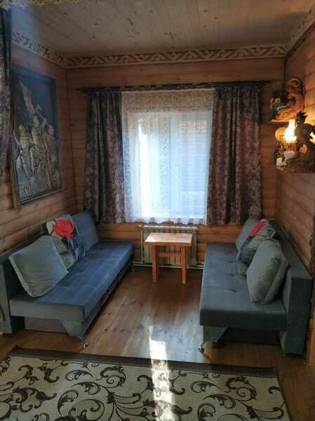 В доме две спальни, зал - студия. На кухне есть вся необходимая посуда, холодильник, чайник, электро-плитка, микроволновая печь, телевизор. Туалет, Душ. Возле дома беседка и мангал, входят в стоимость дома.