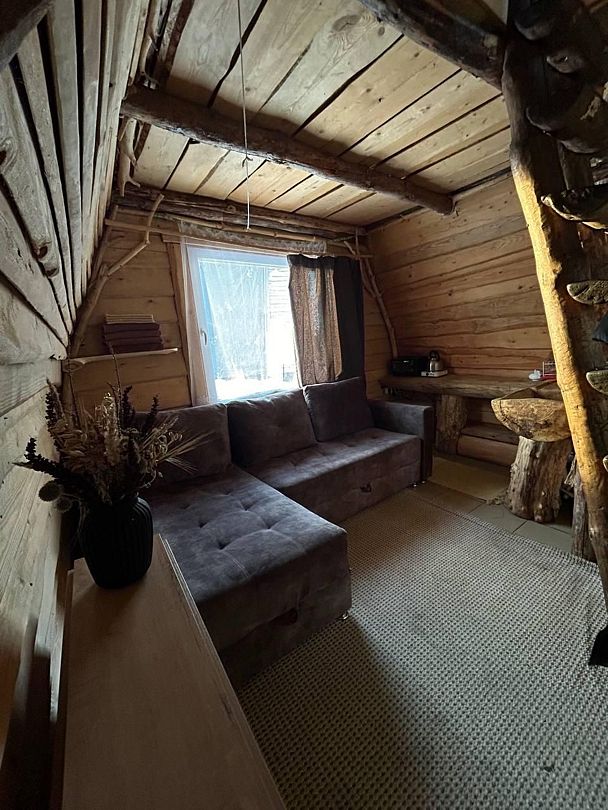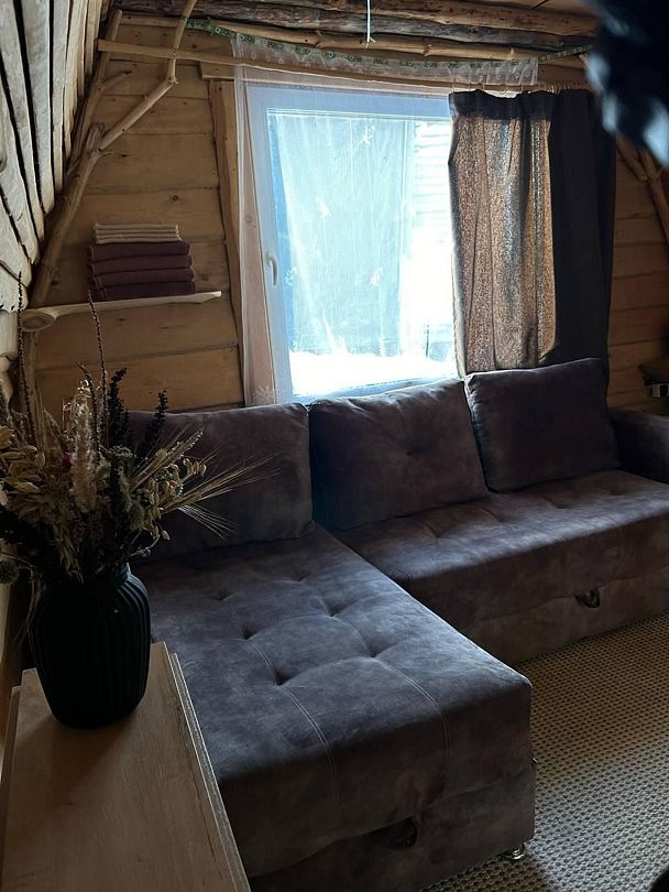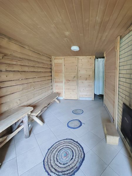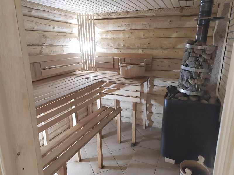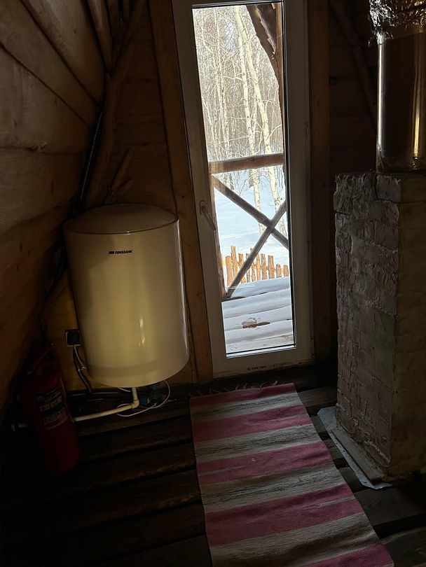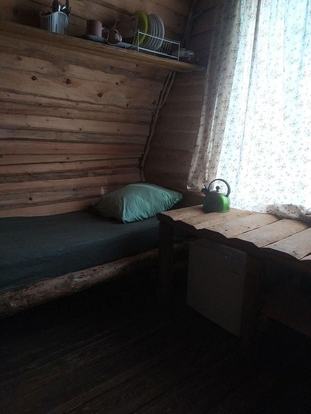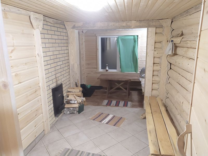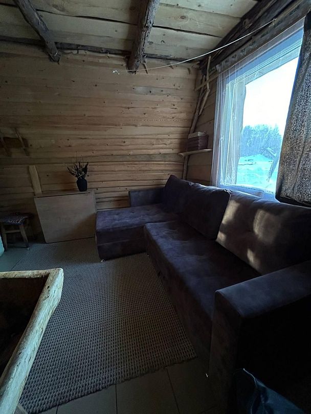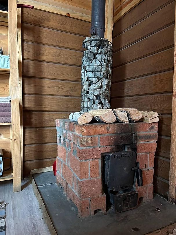 В домике: печное отопление, дополнительно радиатор, душ, туалет, постельное бельё, полотенца, посуда, холодильник, мини-печь.