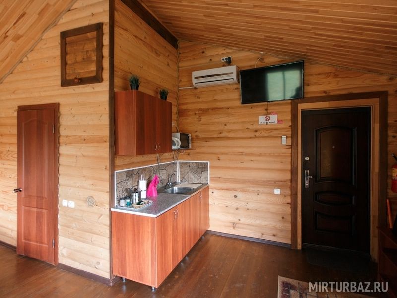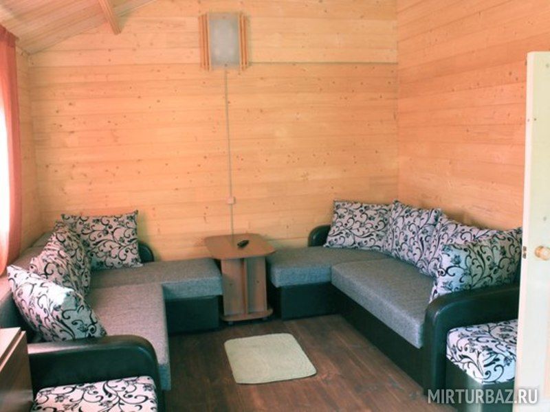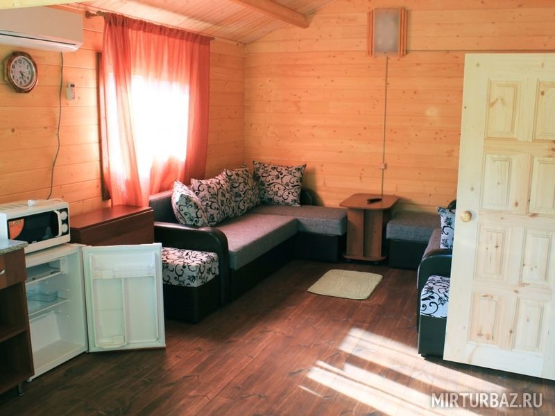 На территории располагаются восемь домиков (5 четырехместных и 3 шестиместных). Каждый домик оснащен всеми удобствами для Вашего отдыха: туалет, душевая кабина, постельное белье, полотенца, набор одноразовых средств гигиены, телевизор, мини-кухня (микроволновая печь, холодильник, чайник, набор посуды).