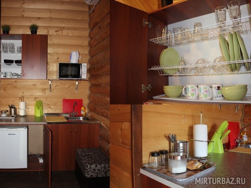 - мини-кухня (микроволновая печь, холодильник, чайник, набор посуды);