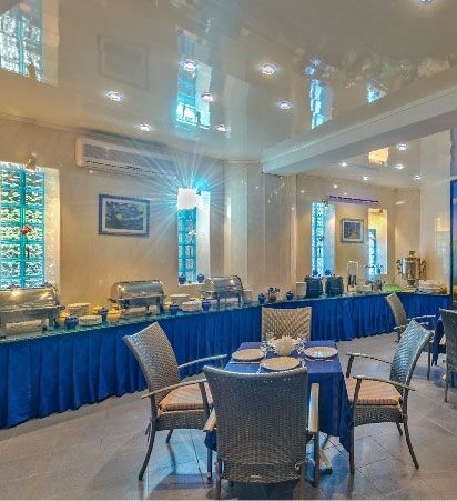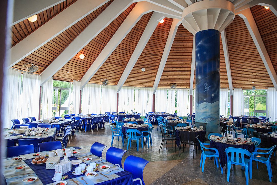 обеденный зал (верхний зал «Звездная трапеза» и зал «Гостиная у камина»: шведский стол)