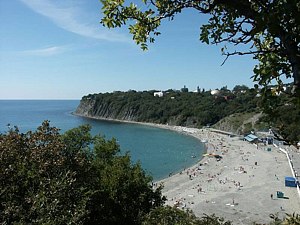 Пляж находится в 850 метрах и имеет все необходимое для полноценного отдыха. Пляж расположен в небольшой бухте, которую с двух сторон окружают скалы. В аренду всегда можно взять лежаки. Работает спасательная станция.
