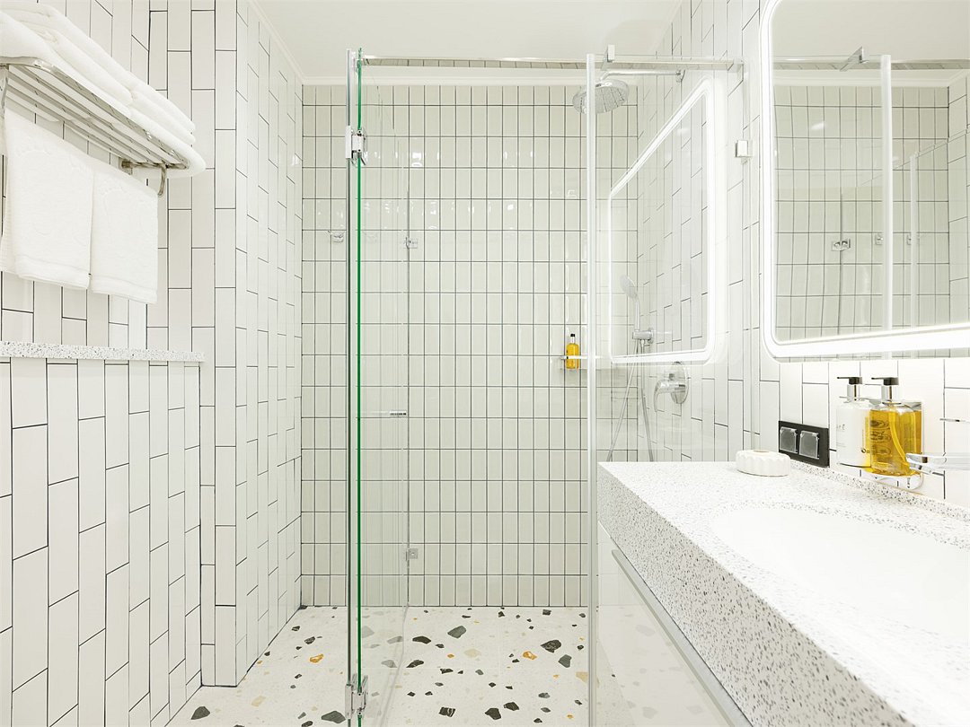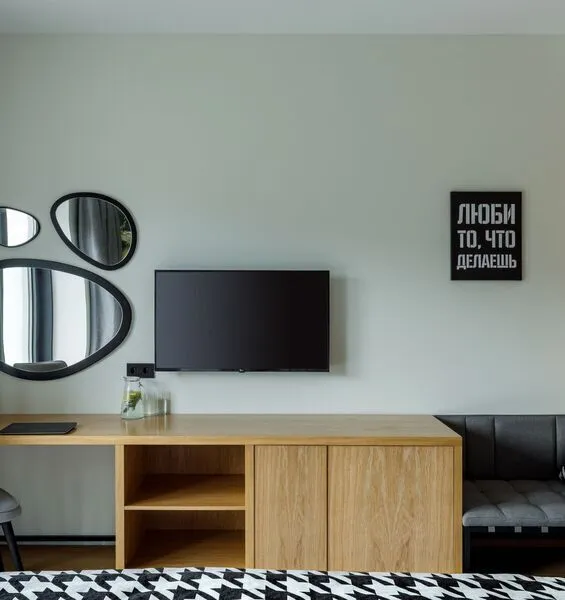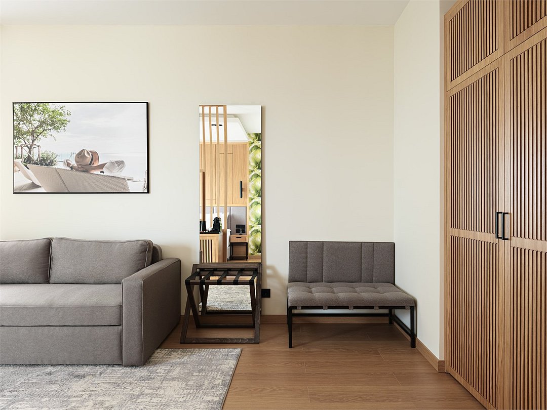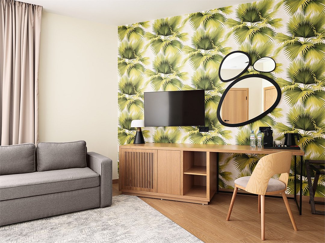 телевизор, Wi-Fi, холодильник, фен, электронные замки, кофемашина, утюг, душевая кабина, санузел, теплый пол, халаты, банные полотенца, пляжные полотенца, тапочки, балкон, шкаф для одежды, гардеробная, вешалки, багажная тумба, стул, туалетный столик, туалетные средства, раскладной диван, внутренний телефон, гостиничная парфюмерия, фанкойл, двуспальный раскладной диван-кровать, вешалки-плечики, без питомцевВ гостиничном номере
