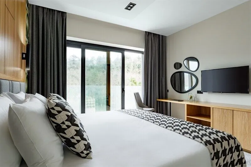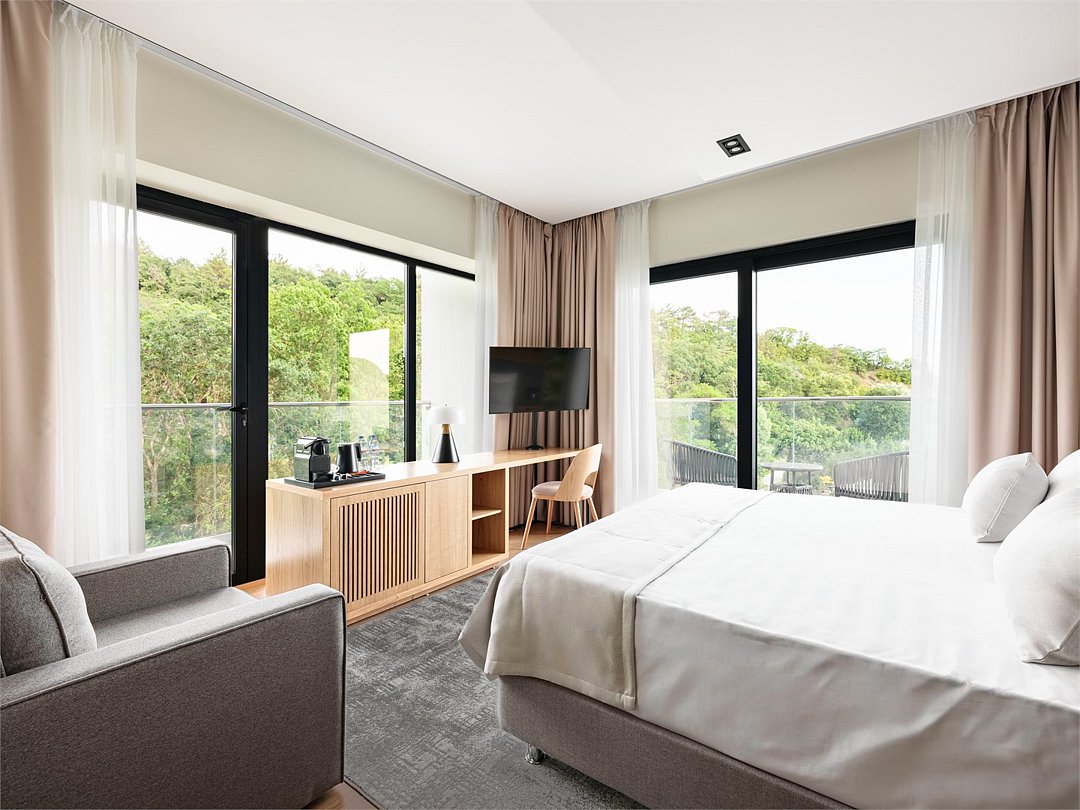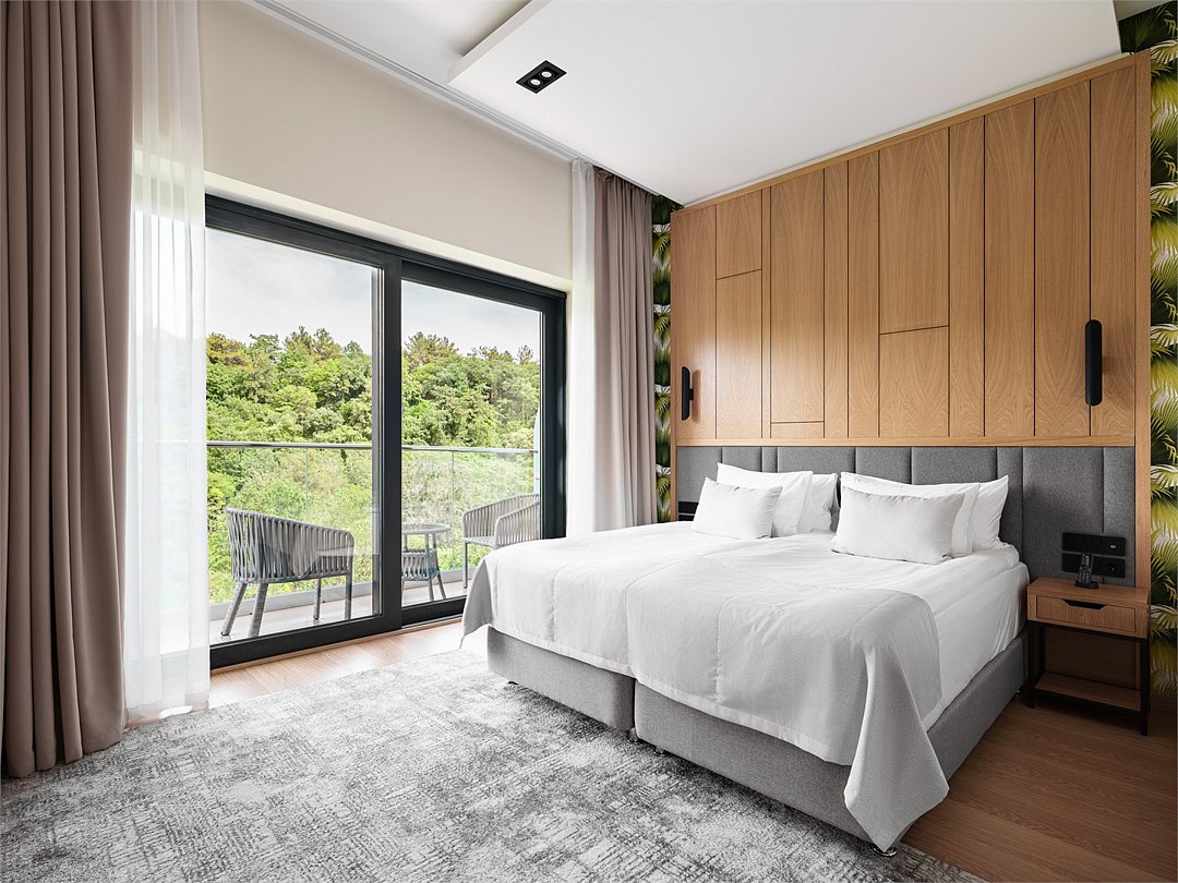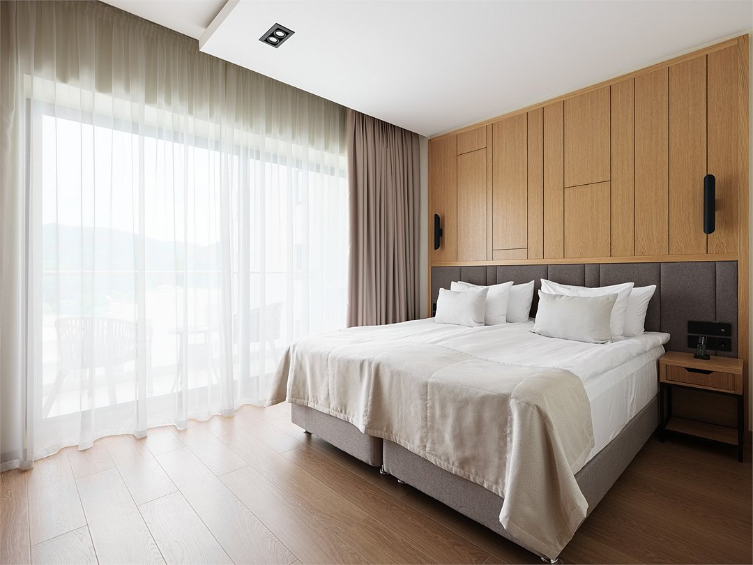 Wi-Fi, светильник, фен, электронные замки, утюг, ванная комната, санузел, халаты, банные полотенца, пляжные полотенца, тапочки, балкон, балкон с красивым видом, кровать «Queen size», гладильная доска, стулья, шкаф для одежды, письменный стол, багажная тумба, зеркало, чайный набор, информационная карта, меню, сейф, унитаз, косметическое зеркало, питьевая вода, душ, центральное кондиционирование, ламинат, высокие потолки, стаканы, стул, панорамные окна, сушилка для белья, внутренний телефон, телевизор с плоским экраном, мини-холодильник, гостиничная парфюмерия, вид на горы, номер для некурящих, фанкойл, антибактериальное средство для рук, неограниченное посещение СПА, чайная станция, уборка номера, набор для приготовления чая и кофе, услуги прачечной (платно), вешалки-плечики, бутилированная вода, мыло, кофеварка, можно с питомцамиВ гостиничном номере