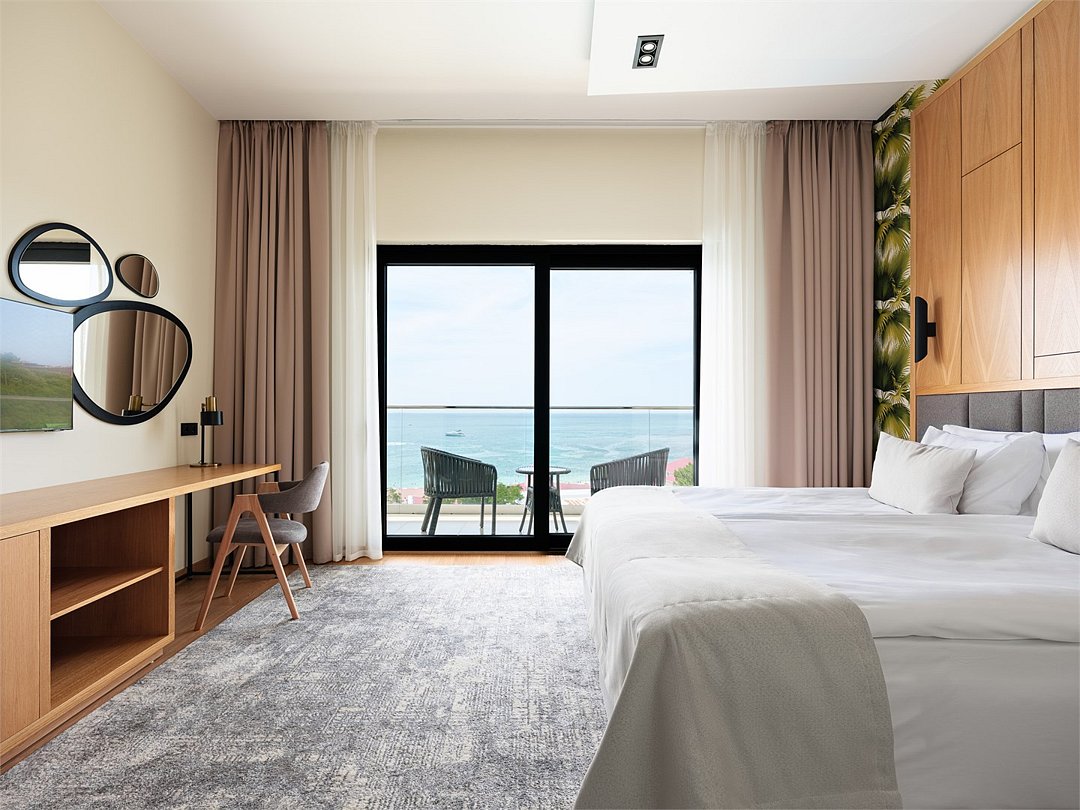 Классический стандартный 2-местный номер с большим панорамным окном и балконом. Номер имеет вид на море. Номер предназначен для размещения 1 или 2 человек. Кровати трансформируется в одну 2-спальную или две 1-спальные кровати шириной 90 см. Дополнительные места не предусмотреныУслуги и удобства