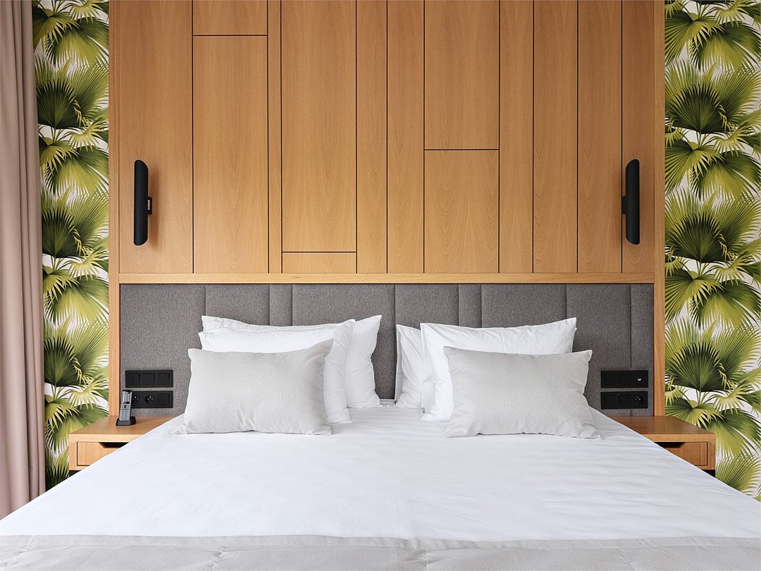Wi-Fi, светильник, фен, электронные замки, утюг, санузел, халаты, банные полотенца, пляжные полотенца, тапочки, балкон, гладильная доска, шкаф для одежды, письменный стол, багажная тумба, зеркало, чайный набор, обслуживание номеров, информационная карта, меню, сейф, унитаз, раковина, косметическое зеркало, душ, вид на море, ламинат, высокие потолки, две кровати «Queen size», стул, туалет, сушилка для белья, внутренний телефон, телевизор с плоским экраном, мини-холодильник, гостиничная парфюмерия, номер для некурящих, фанкойл, неограниченное посещение СПА, чайная станция, уборка номера, набор для приготовления чая и кофе, вешалки-плечики, бутилированная вода, мыло, кофеварка, можно с питомцамиВ гостиничном номере