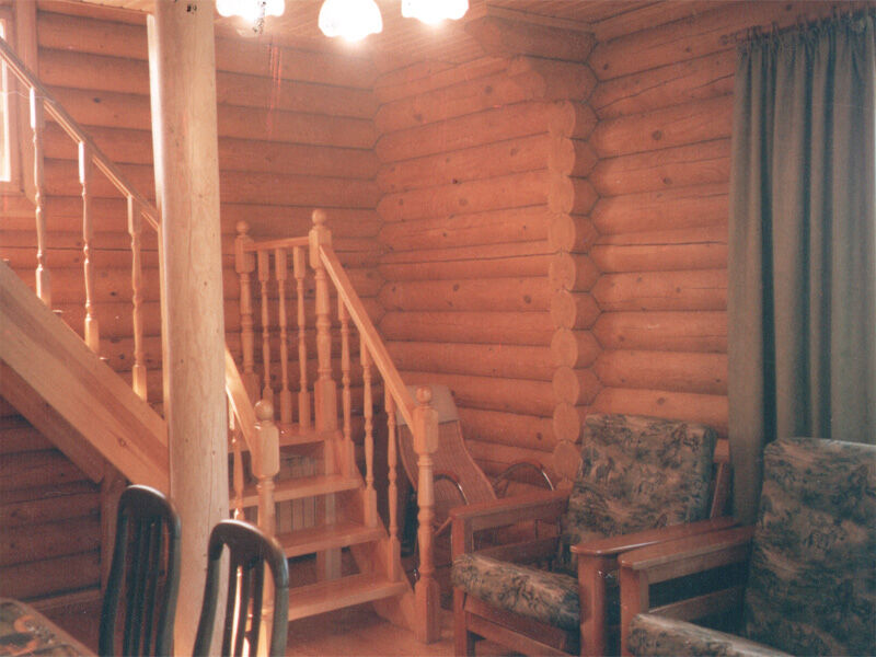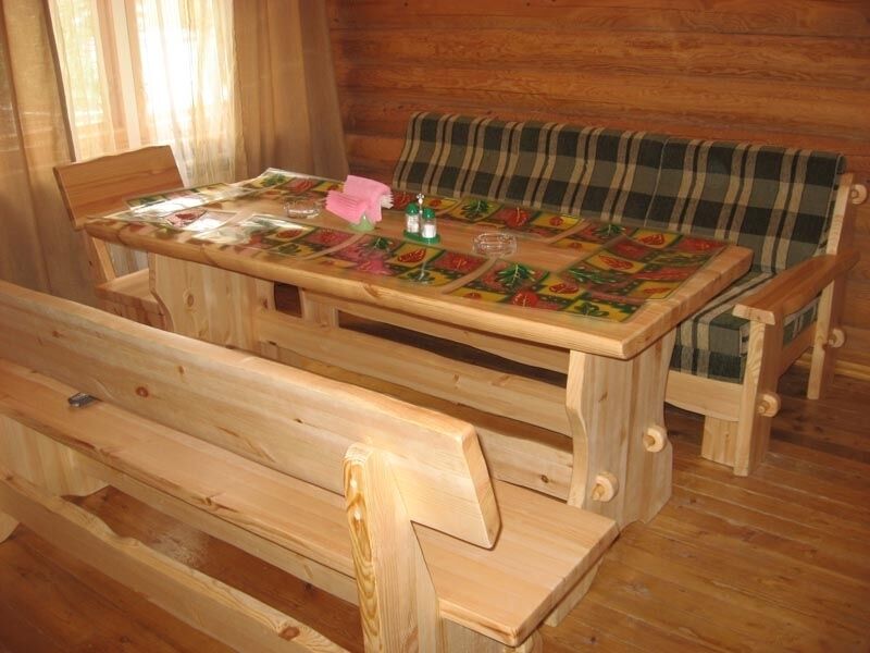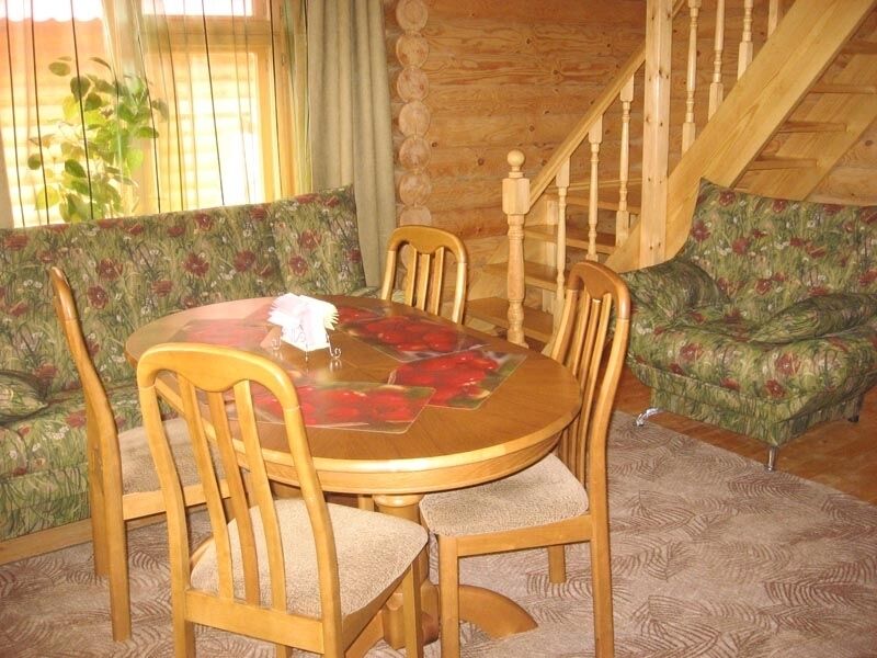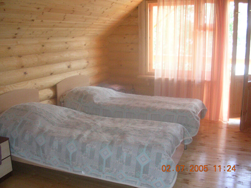 На первом этаже располагается просторная гостиная с телевизором, раскладным диваном и удобными креслами. С гостиной совмещена кухня, оснащенная кухонным гарнитуром, электрической плитой, холодильником, раковиной (гор. и хол. вода), кухонным столом, стульями и посудой. На этом же этаже располагается санузел (душевая кабина и туалет). Второй этаж состоит из 2х спален с полутора и 2х спальной кроватями. На веранде Вы сможете отдохнуть в удобных креслах, потягивая сок за столиком. Вы не почувствуете, что находитесь вдалеке от дома. Уютная домашняя атмосфера Вам обеспечена. Все дома с верандами, оборудованными пластмассовыми столами и креслами.