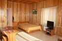 В каждом номере имеется санузел, встроенная кухонная зона, обеденная зона, двуспальная кровать и двуспальный диван, комод для одежды, шкаф-купе, телевизор.
