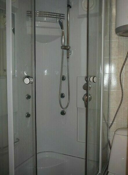 Санузел домика №2 находится рядом и включает в себя унитаз и душ (холодная и горячая вода).