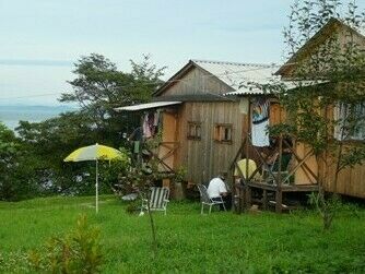Рассчитан на проживание дружной компании до 9-ти человек. Представляет из себя утеплённую деревянную постройку состоящую из 3-х уровней: в цокольном этаже расположен сан.узел (унитаз, умывальник, душ,горячая вода); На первом этаже общей площадью 24 кв.м располагаются кухня 12 кв.м она же столовая, окна которой выходят на море из кухни можно попасть в две отдельные комнаты по 6 кв.м каждая из которых оборудована тремя деревянными лежаками для отдыха и сна.