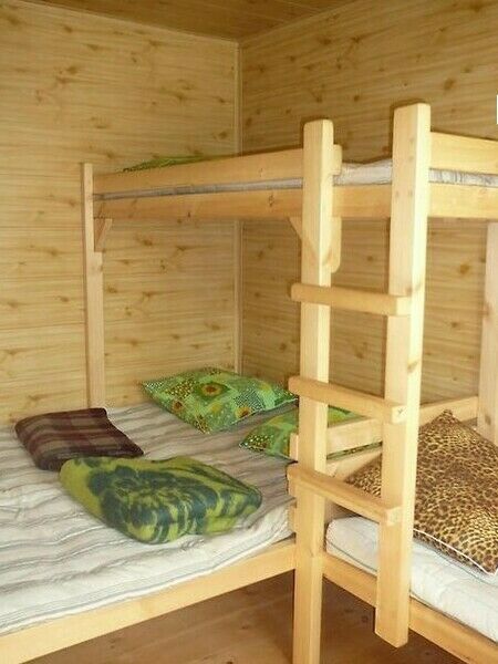 Рассчитан на проживание дружной компании (семьи) до 4-х человек. Представляет из себя утеплённую деревянную постройку 16 кв.м с выделенными спальными местами оборудованными 2-х ярусным и 2-х спальным деревянными лежаками (матрасы, подушки, одеяла и постельное бельё). Внутри домика оборудован сан.узел включающий в себя унитаз, душ ( холодная, горячая вода).
