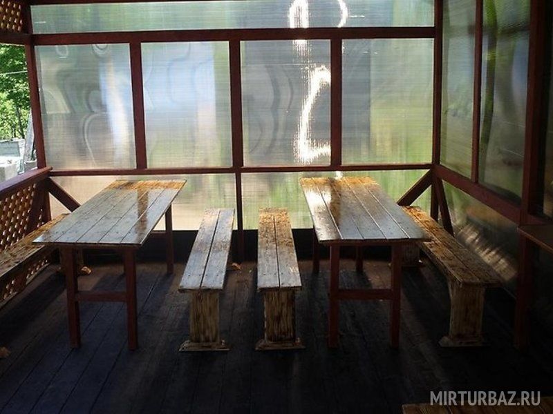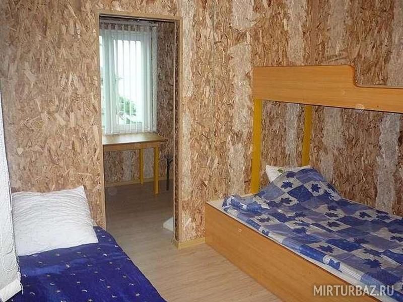 На территории базы обустроены двухэтажные домики с комфортными номерами для четырех гостей. В каждом домике по два номера на этаже. Вход в номера отдельный, каждый имеет оборудованный санузел с душем, выделена кухонная зона, есть газовая плита, холодильник, посуда. Также вам предложат питание в столовой. Парковка на территории бесплатная.