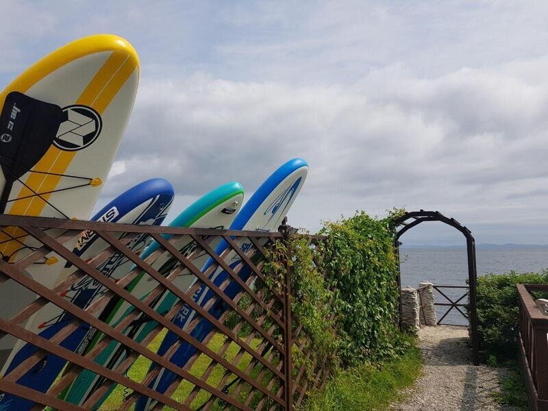 На территории расположены беседки, места для готовки на мангале, охраняемая стоянка, баня с чаном. Рядом находится песчано-галечный пляж. «Морская корова» — это идеальное решение для спокойного семейного отпуска вдали от городской суеты.