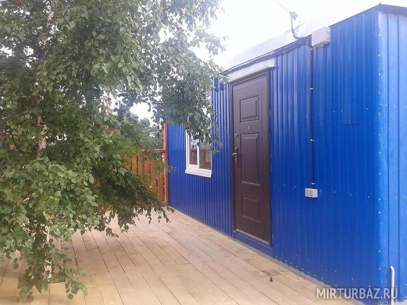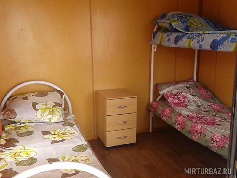 В каждом домике расположена односпальная кровать, двухъярусная кровать, тумбочка. Санблок один на два домика (туалет, оборудованный унитазом, душ с теплой водой, раковина).